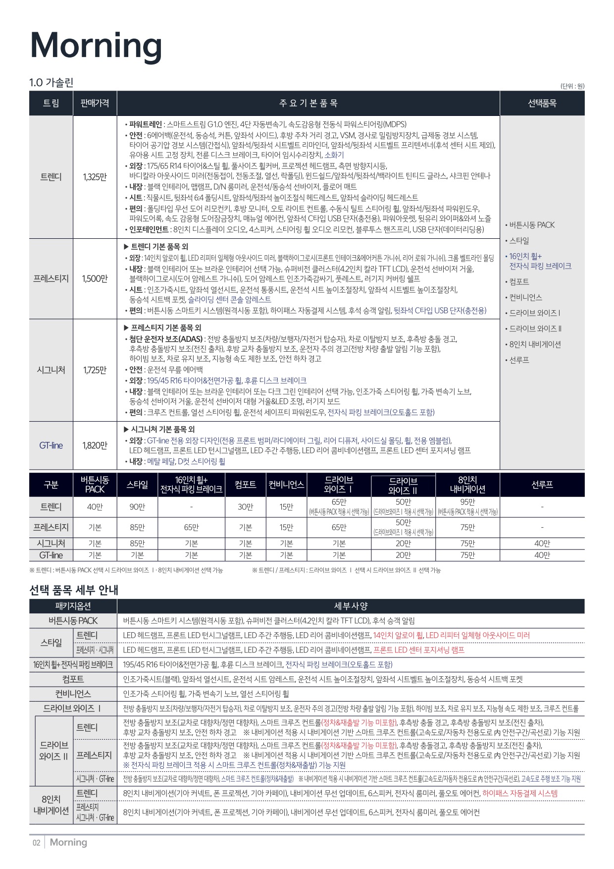 2023년 7월 모닝 신차가격표 (모닝 부분변경 출시)