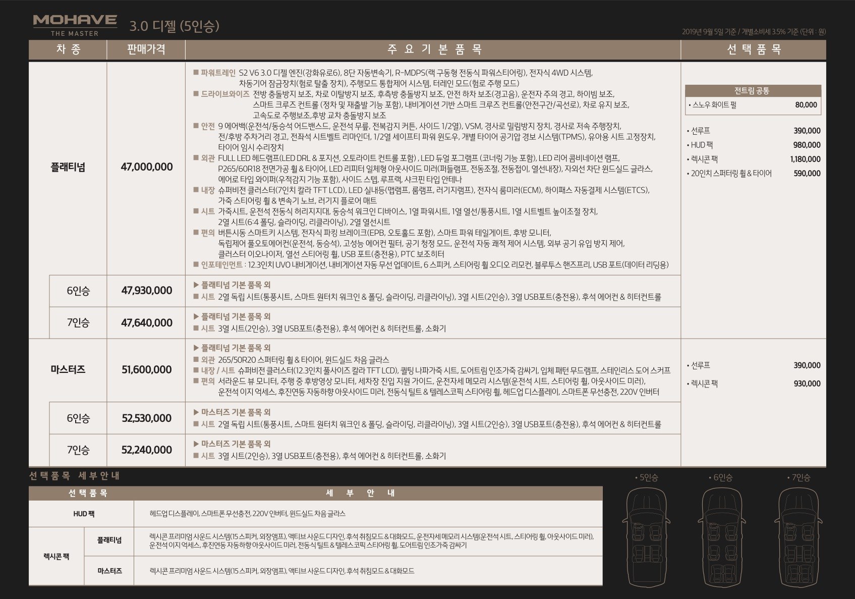 2019년 9월 모하비 더마스터 신차가격표 (모하비 더 마스터 출시)