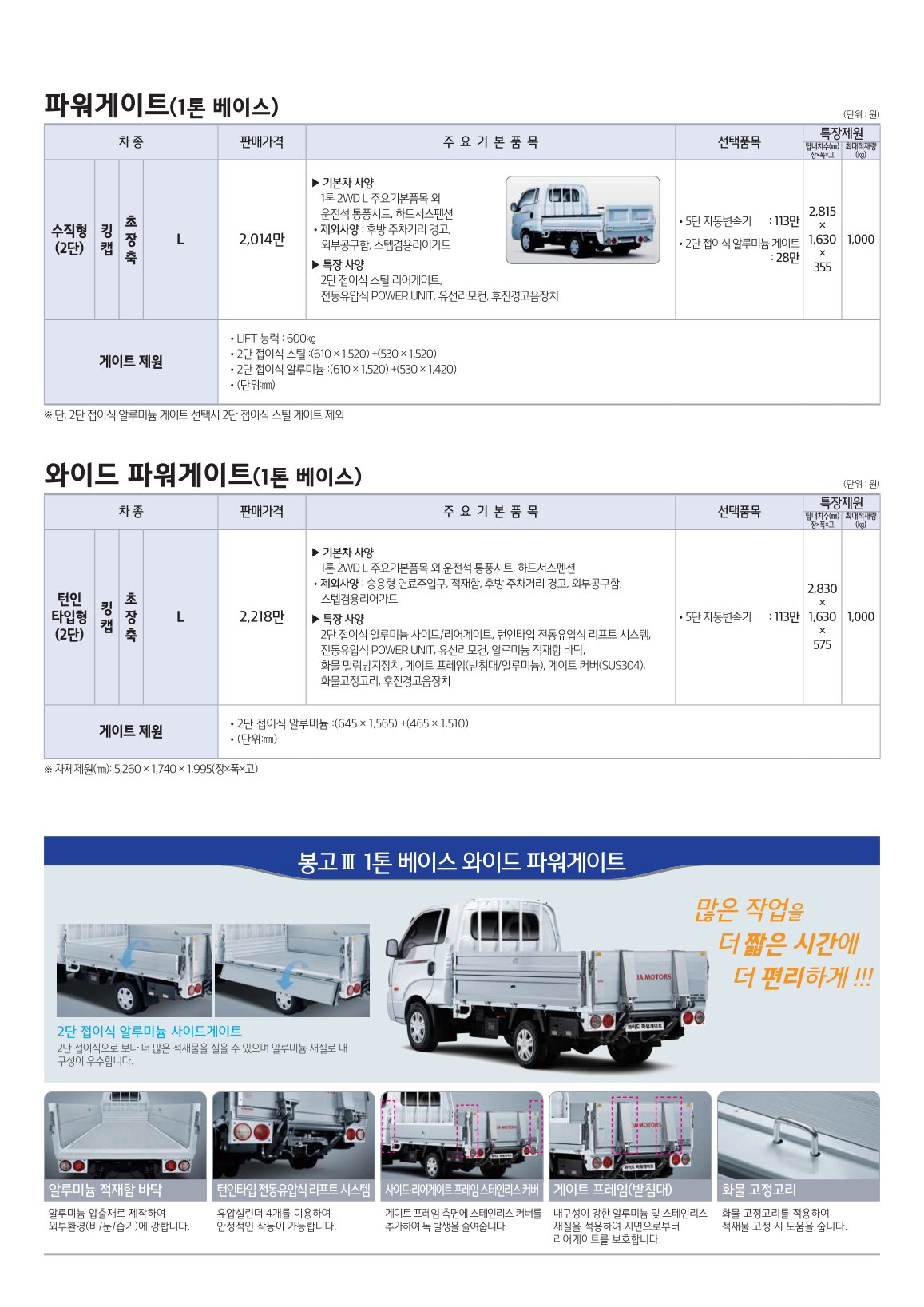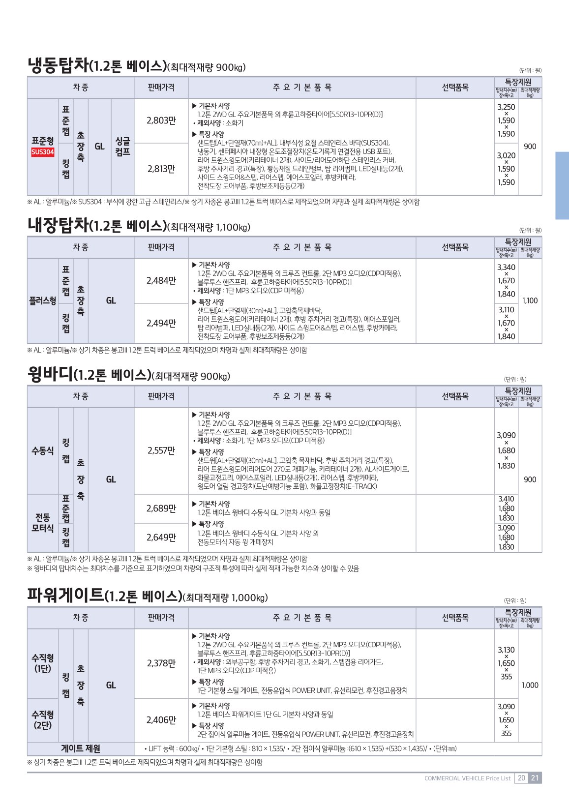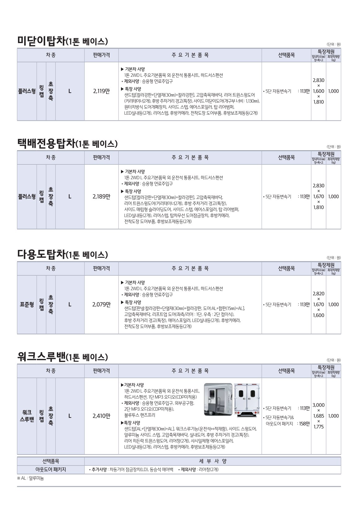 2021년 7월 봉고3 EV 특장차 (탑차/윙바디/파워게이트) 신차가격표