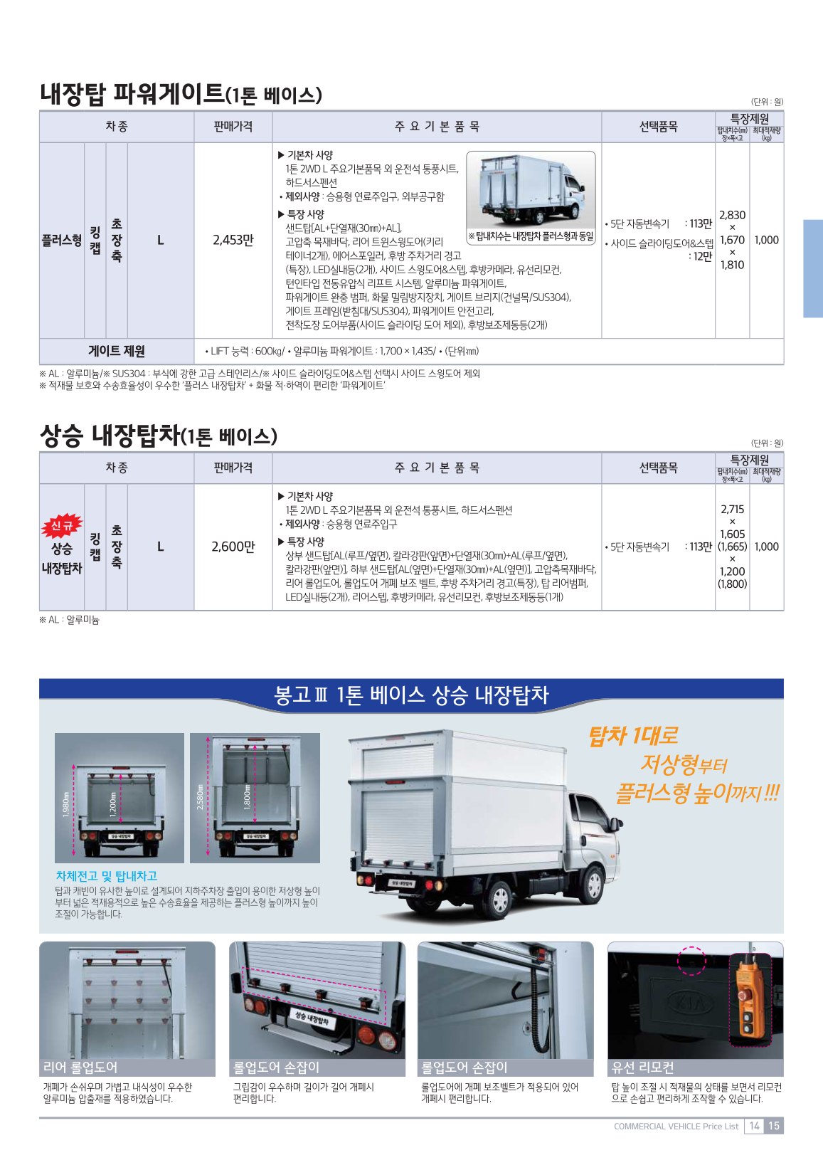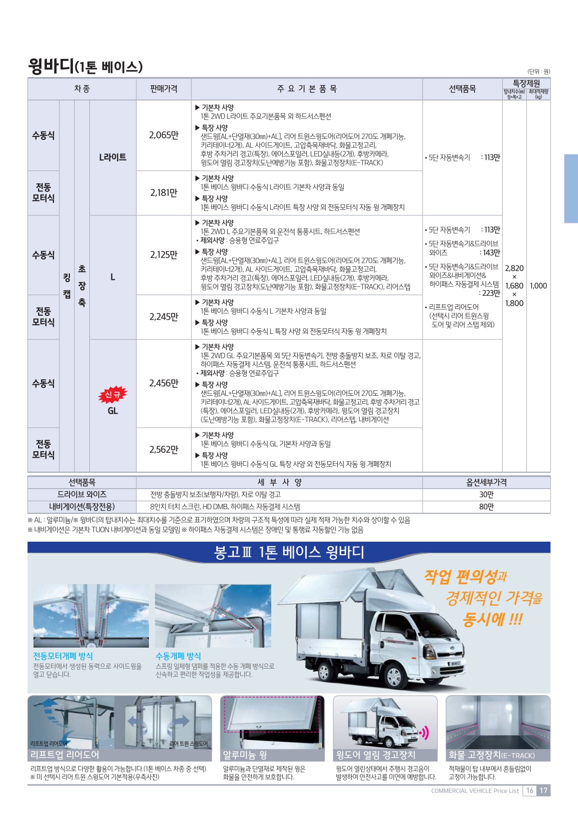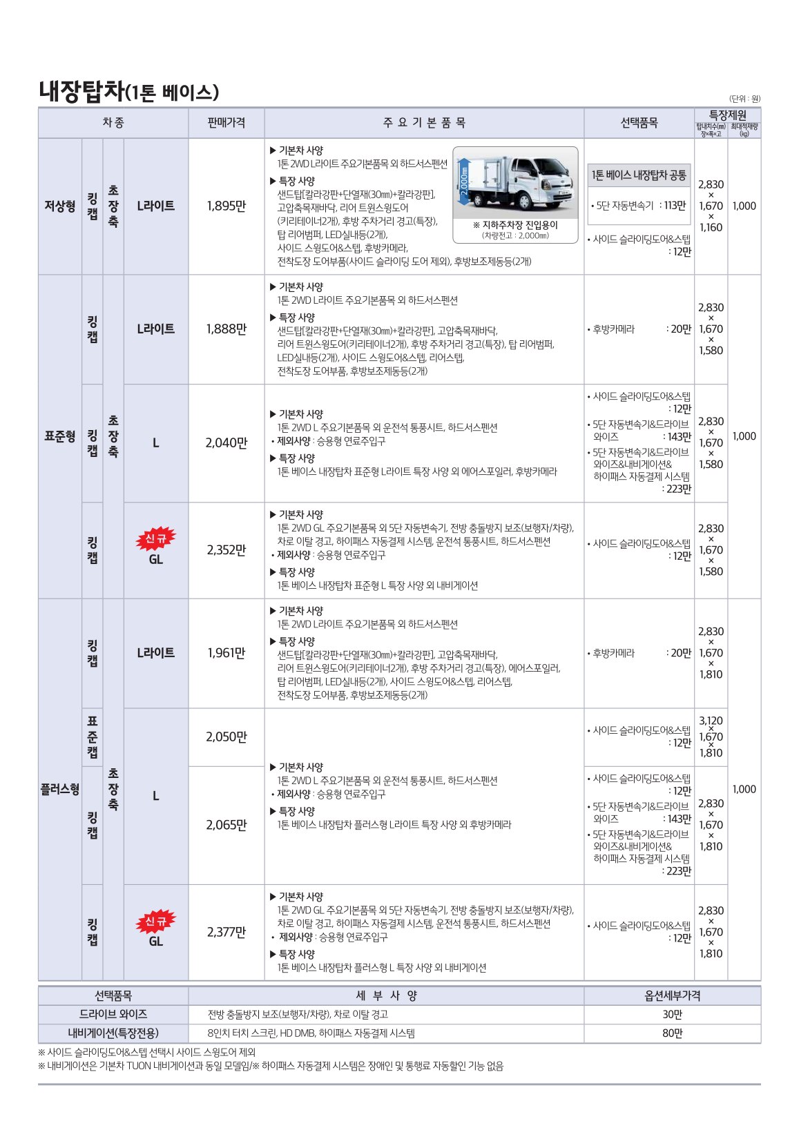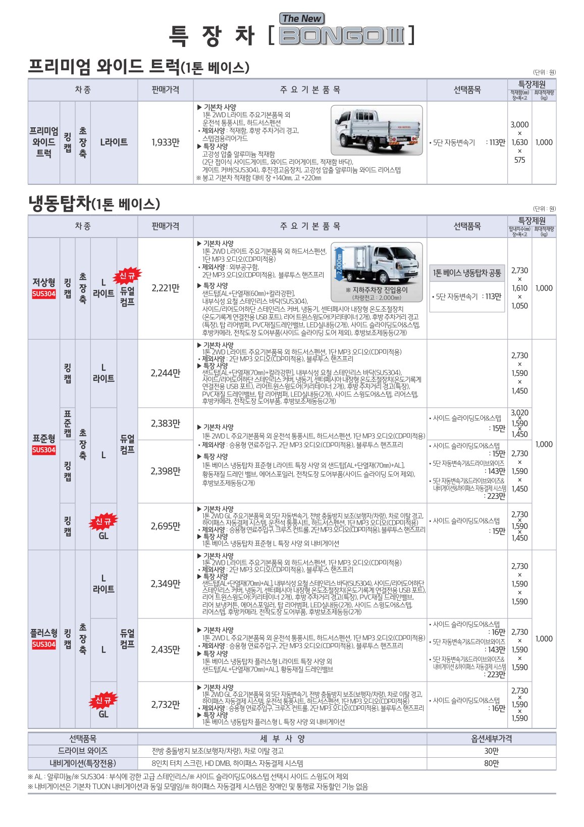 2021년 7월 봉고3 EV 특장차 (탑차/윙바디/파워게이트) 신차가격표
