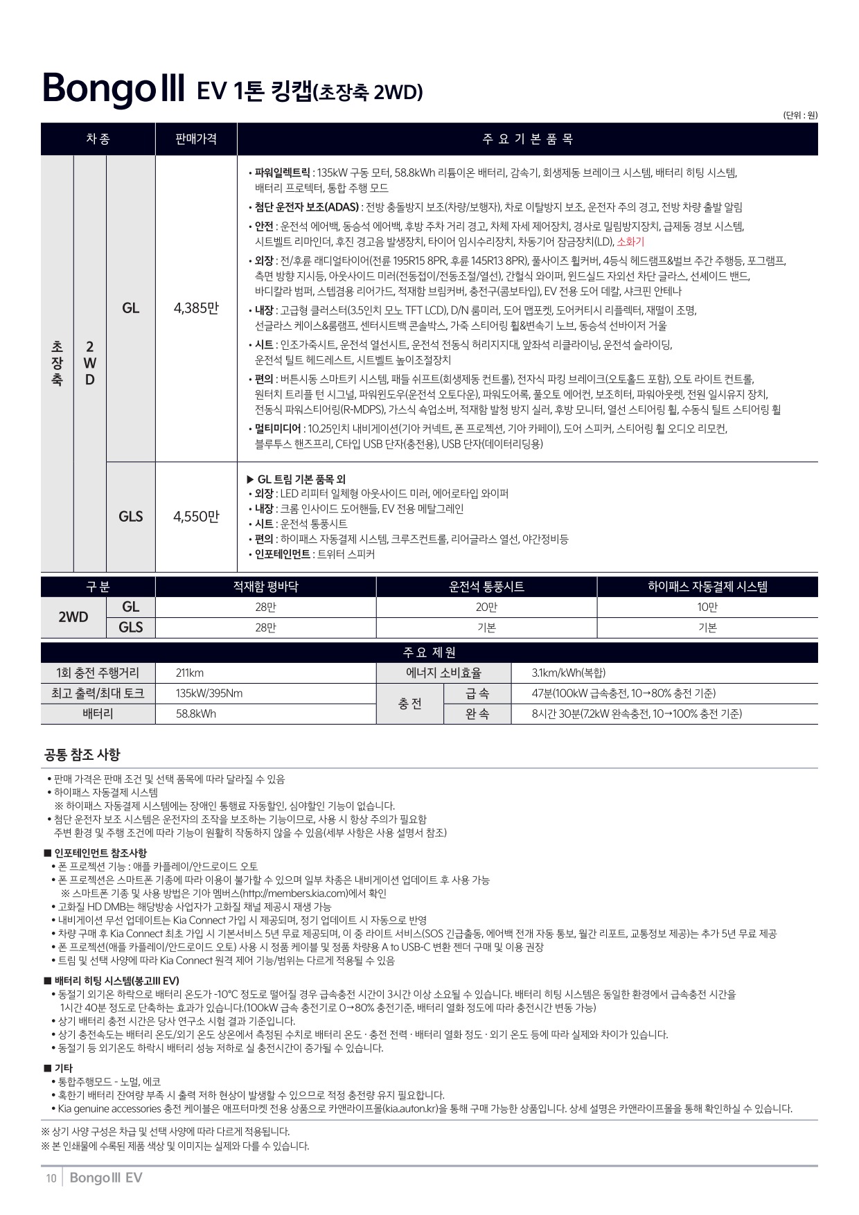 2024년 12월 봉고3 EV & 봉고3 EV 특장차 신차가격표