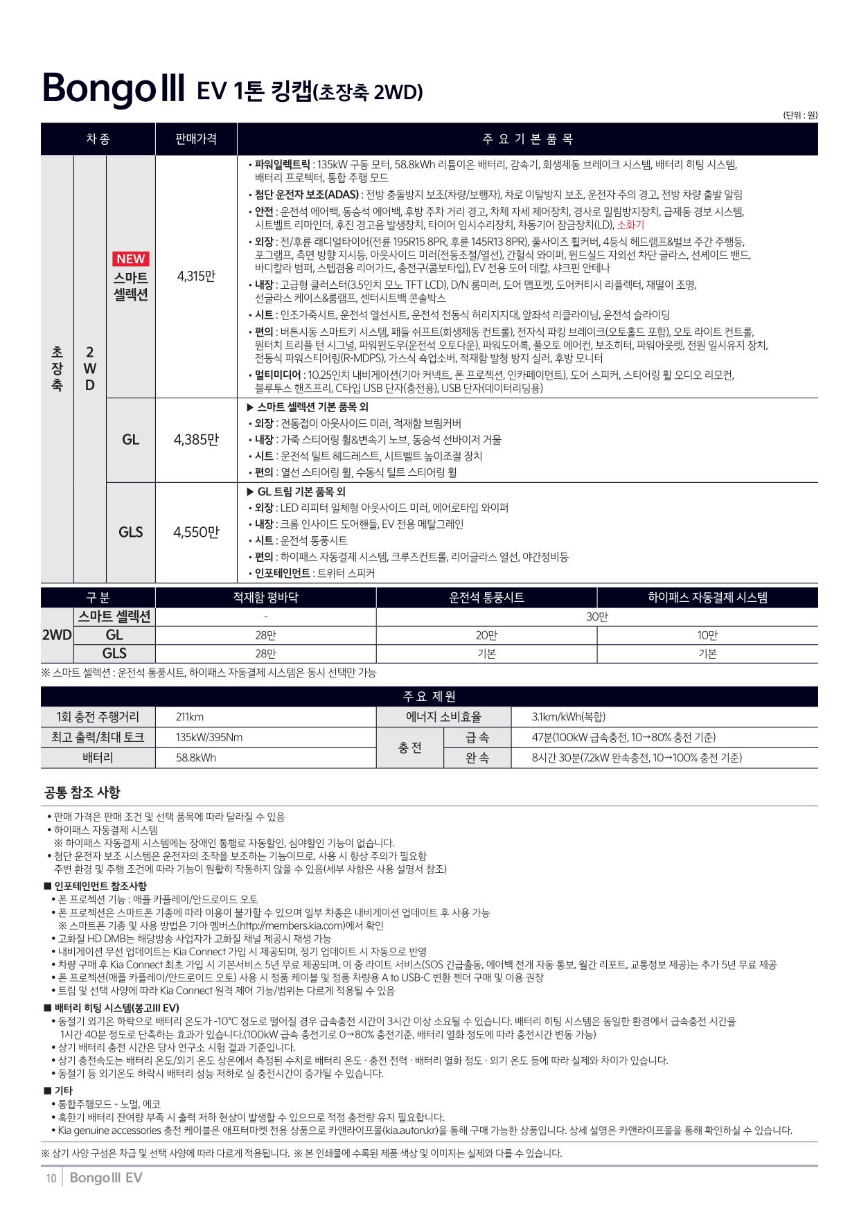 2025년 1월 봉고3 EV 가격표 (스마트셀렉션 트림 출시)