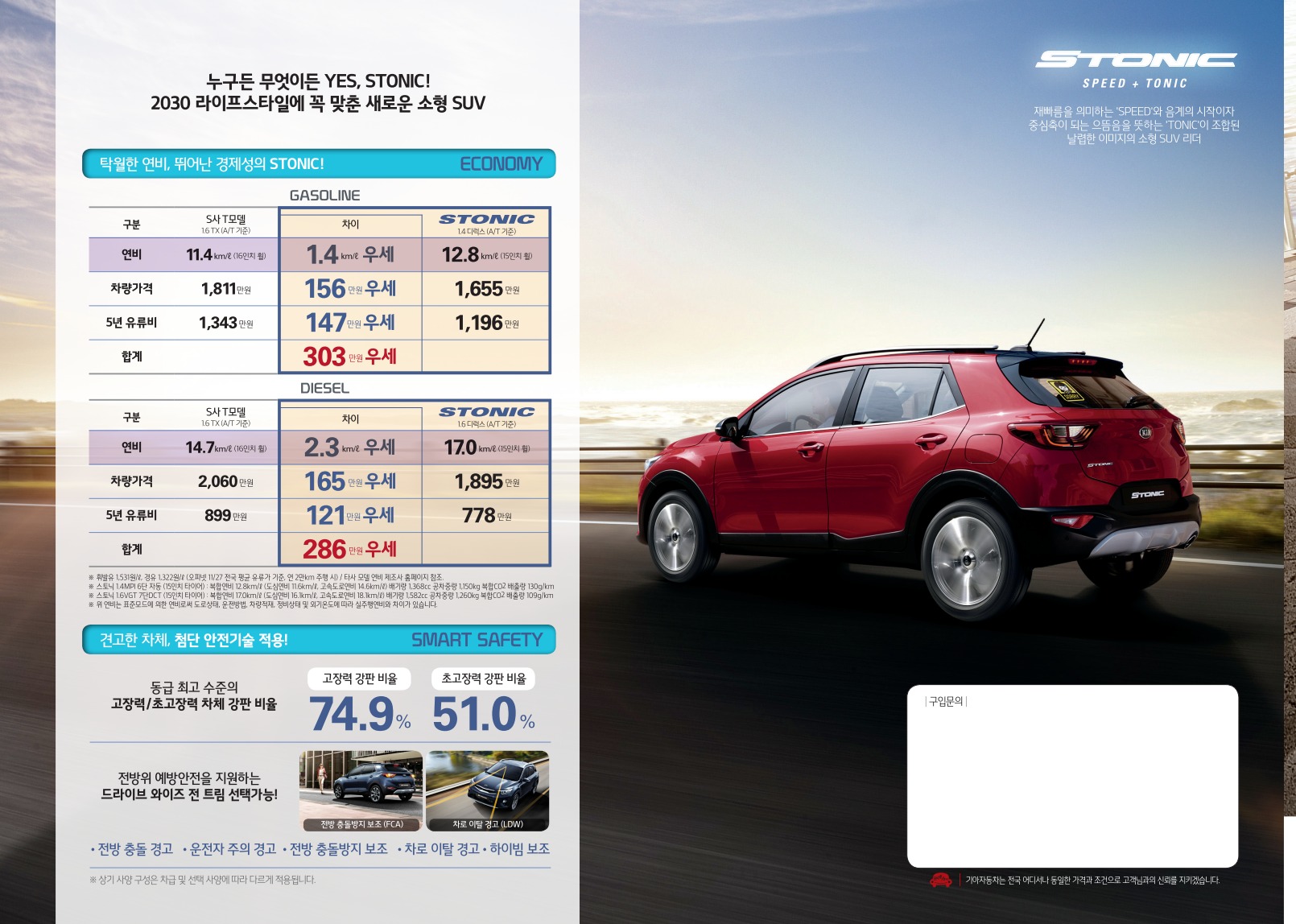 2018년 8월 7일 스토닉 신차가격표 (1.0 터보 T-GDi 출시)
