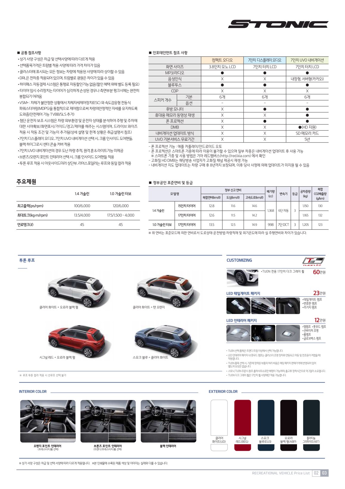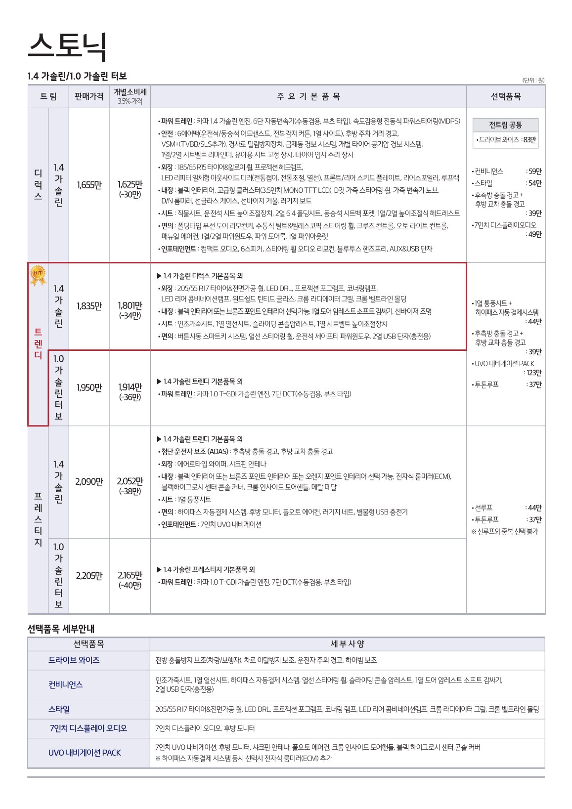 2018년 8월 7일 스토닉 신차가격표 (1.0 터보 T-GDi 출시)