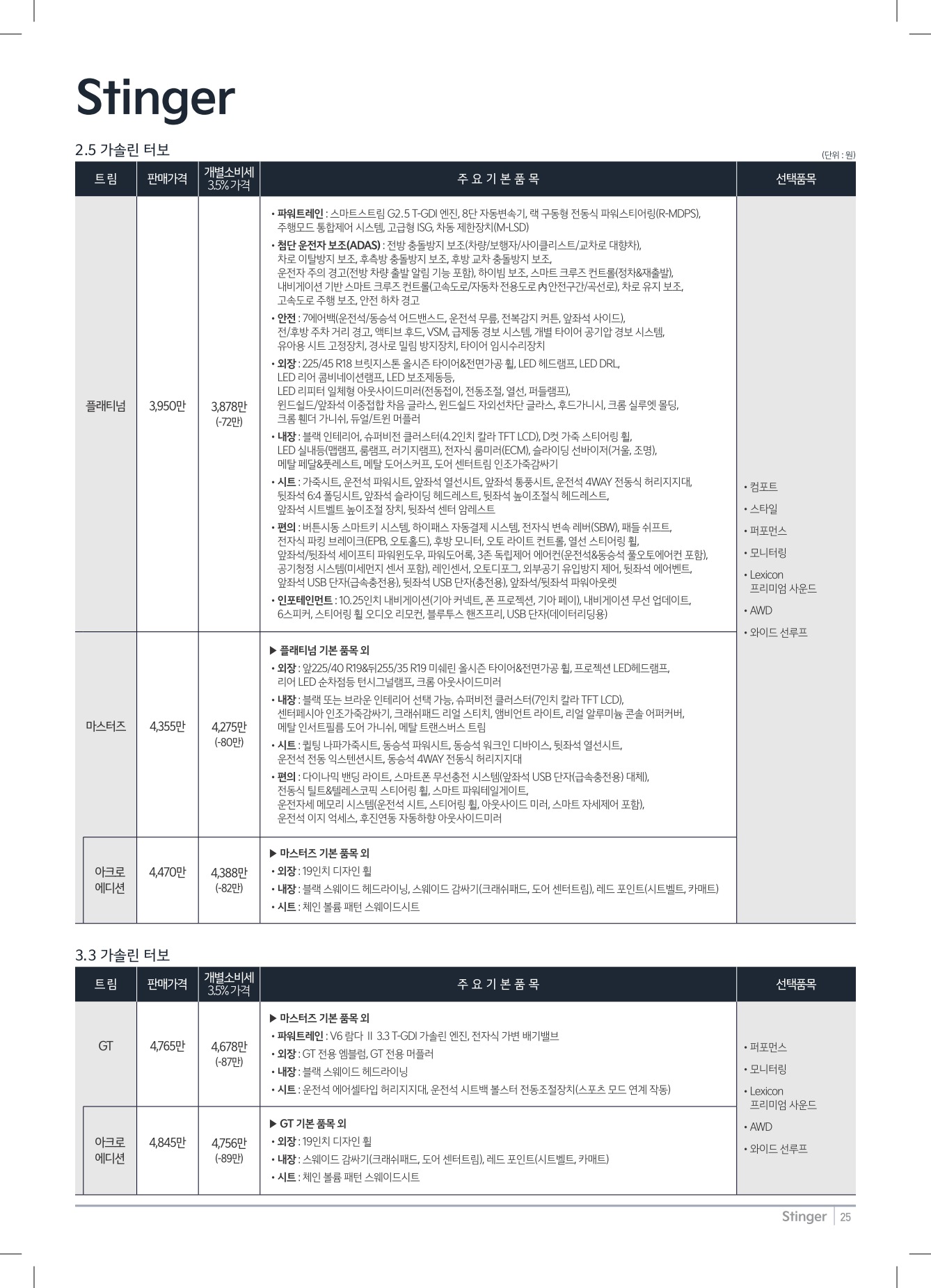 2021년 8월 스팅어 신차가격표 (2022년형 스팅어 출시)