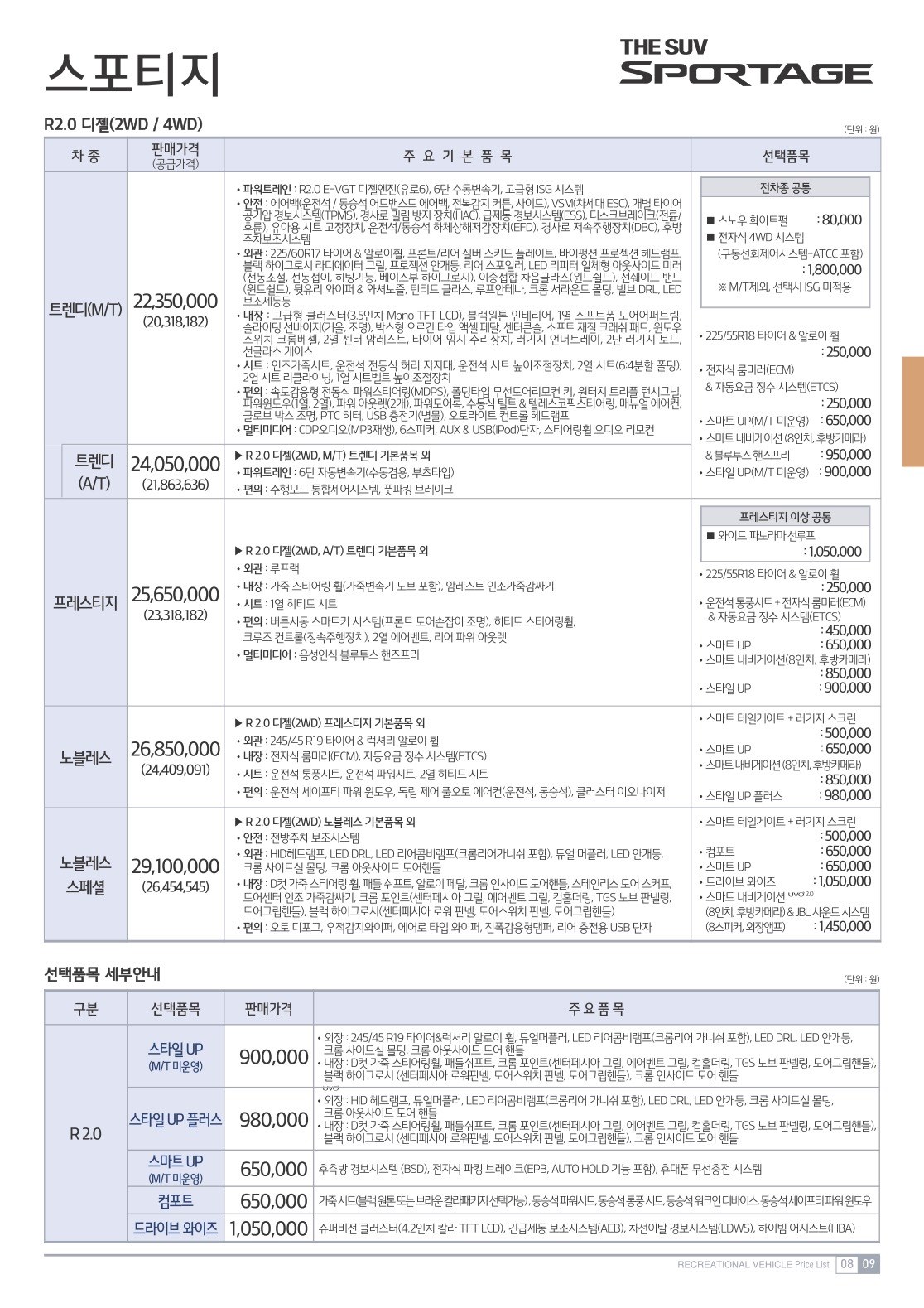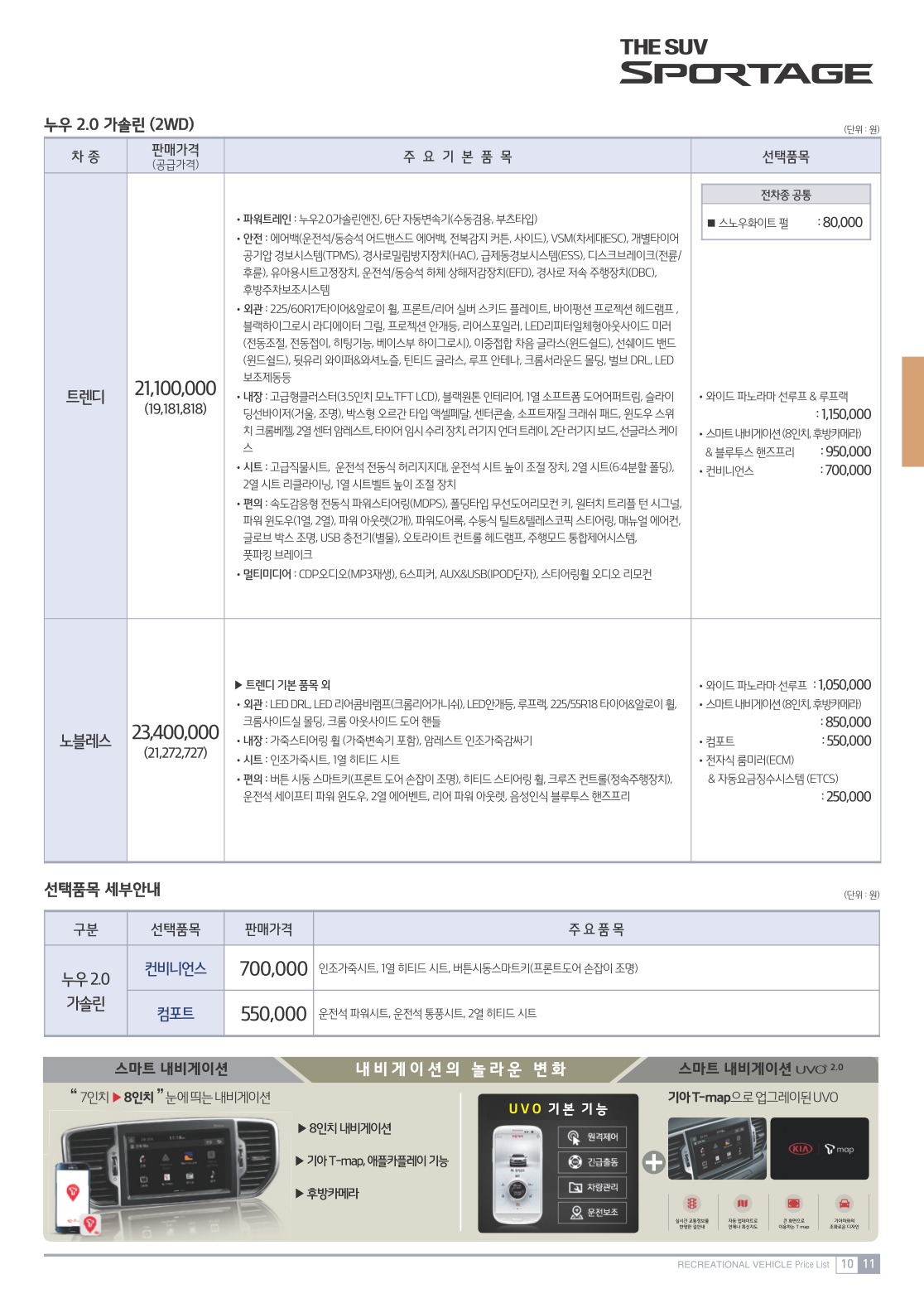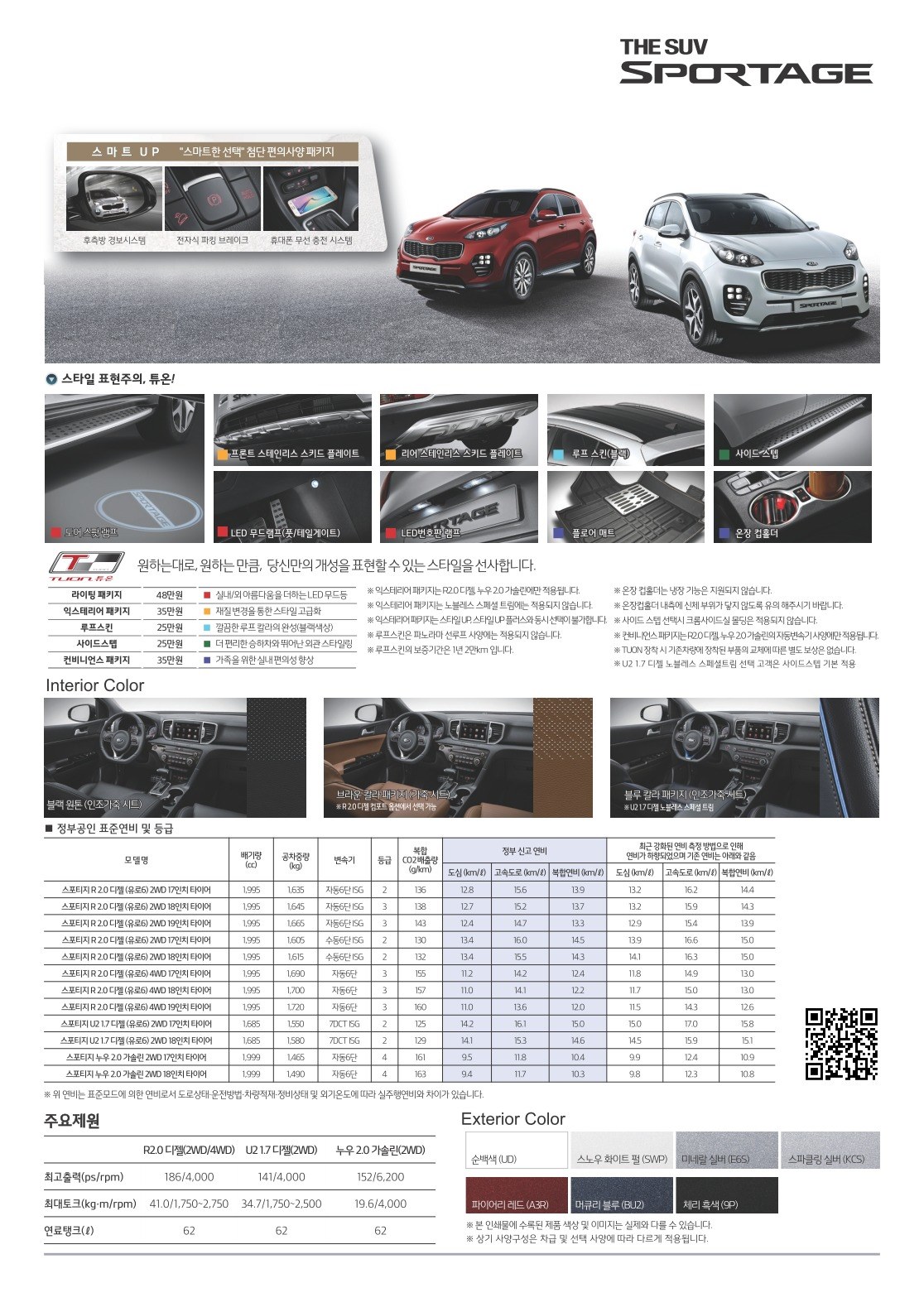 2016년 9월 스포티지 QL 신차가격표 (2017년형)
