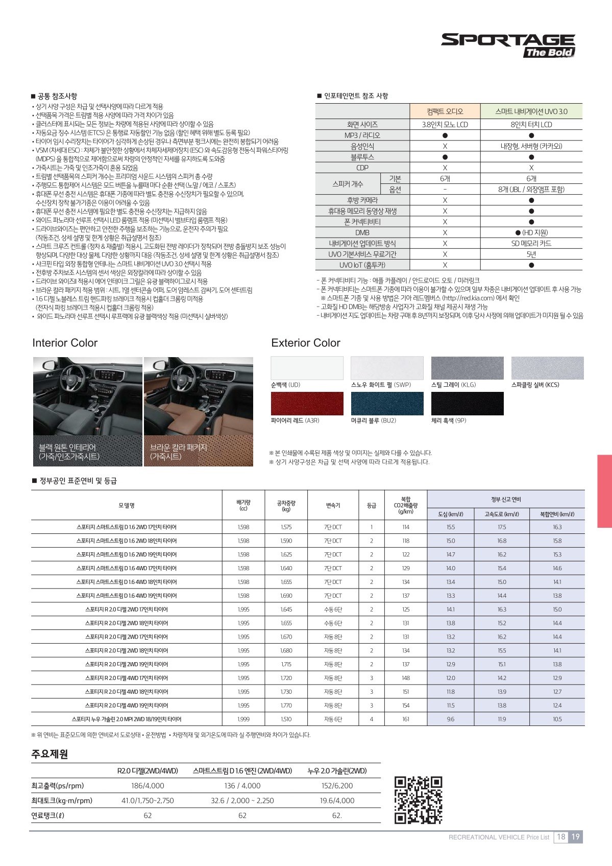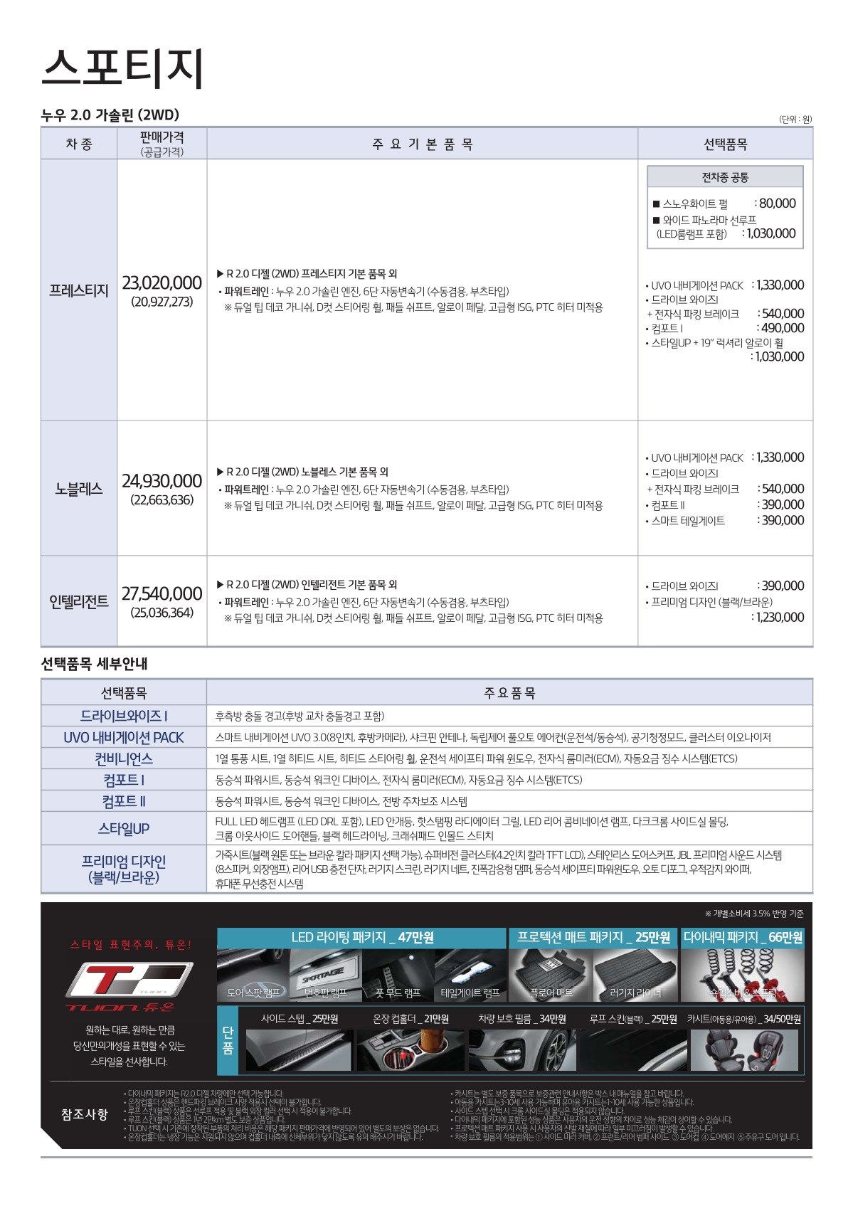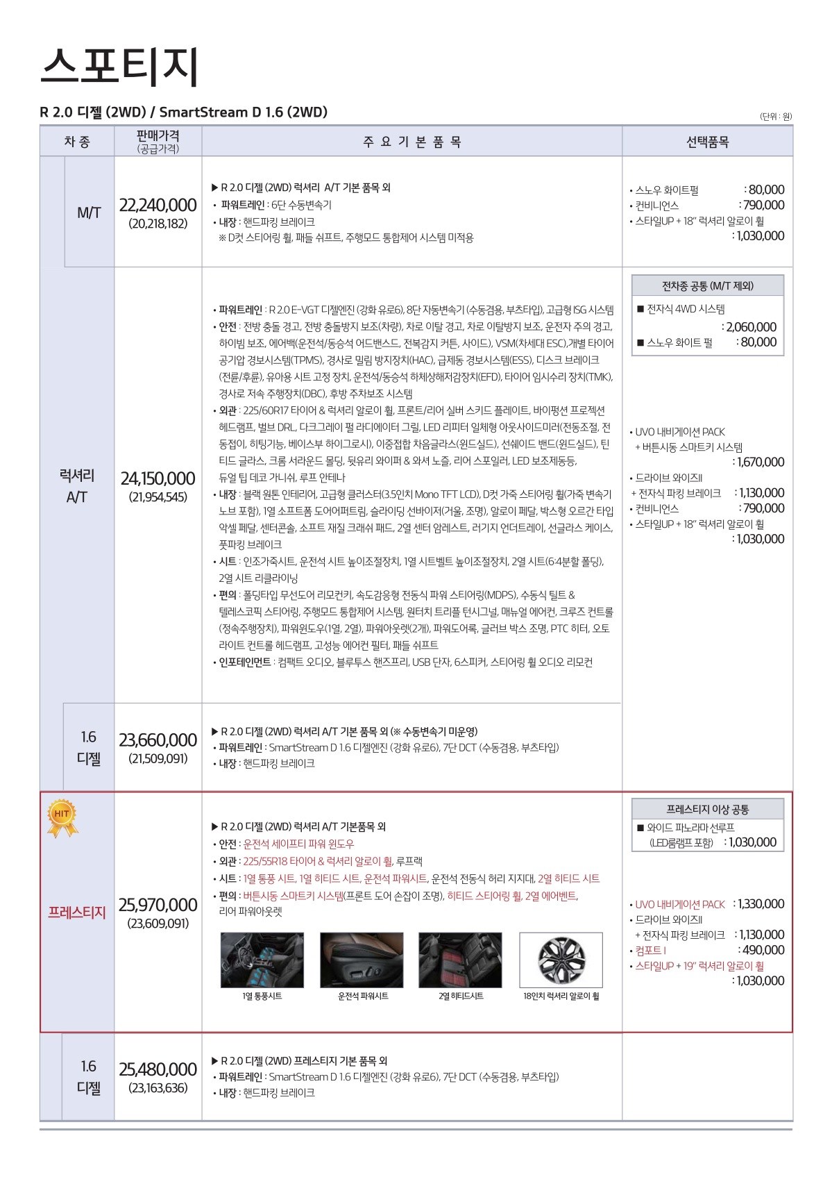 2019년 8월 스포티지 가격표 (2020년형 스포티지 출시)