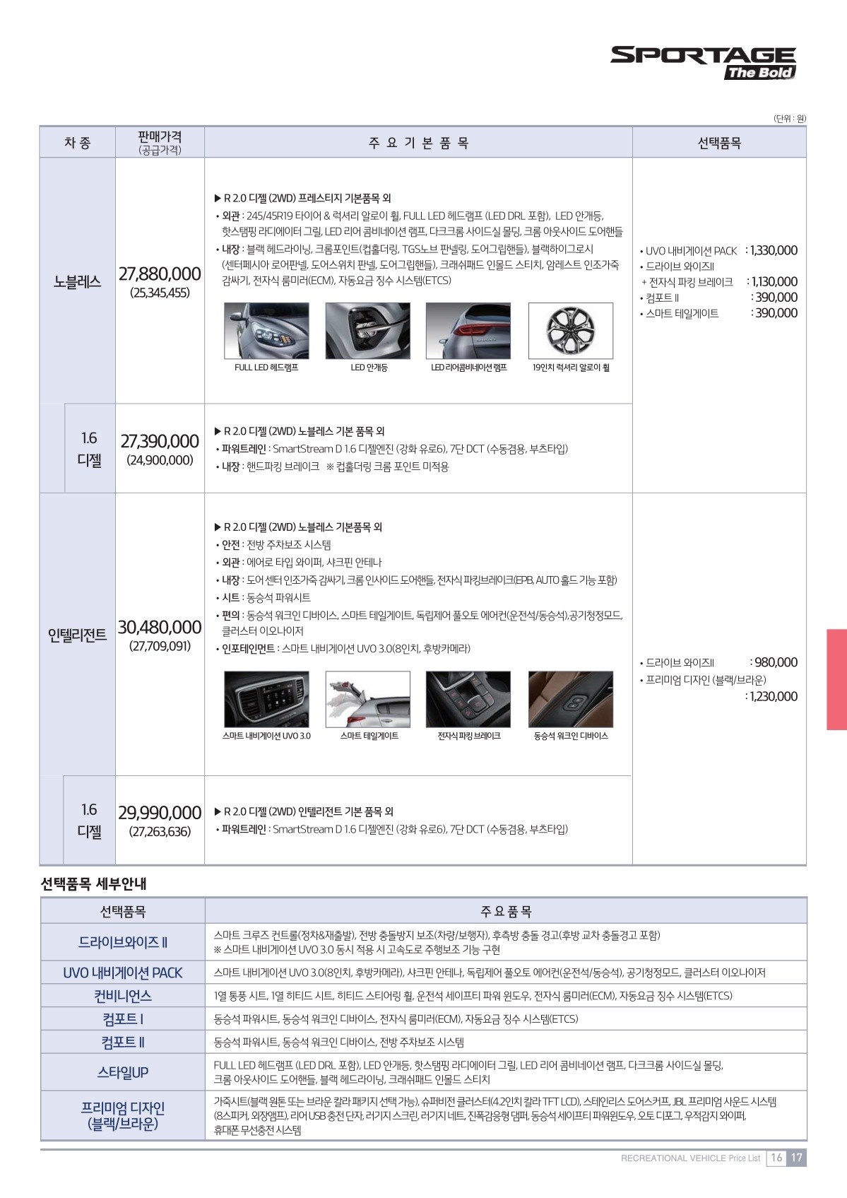 2018년 7월 스포티지 신차가격표 (스포티지 더볼드 출시)