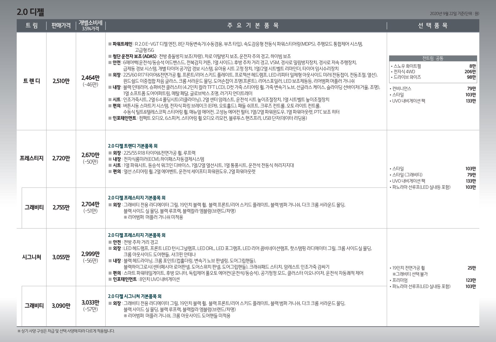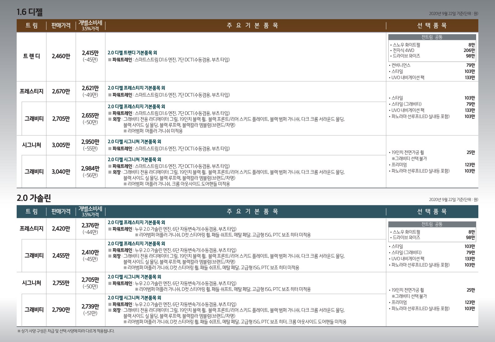 2020년 9월 스포티지 신차가격표 (2021년형 스포티지 출시)