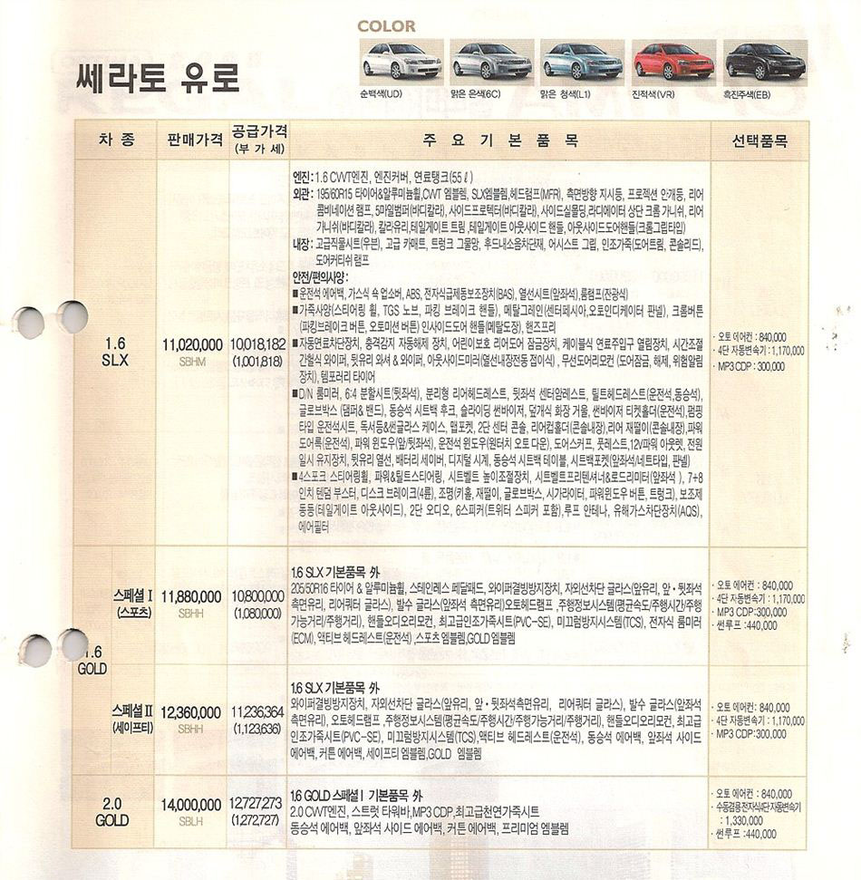 2005년 11월 쎄라토 / 쎄라토유로 신차가격표