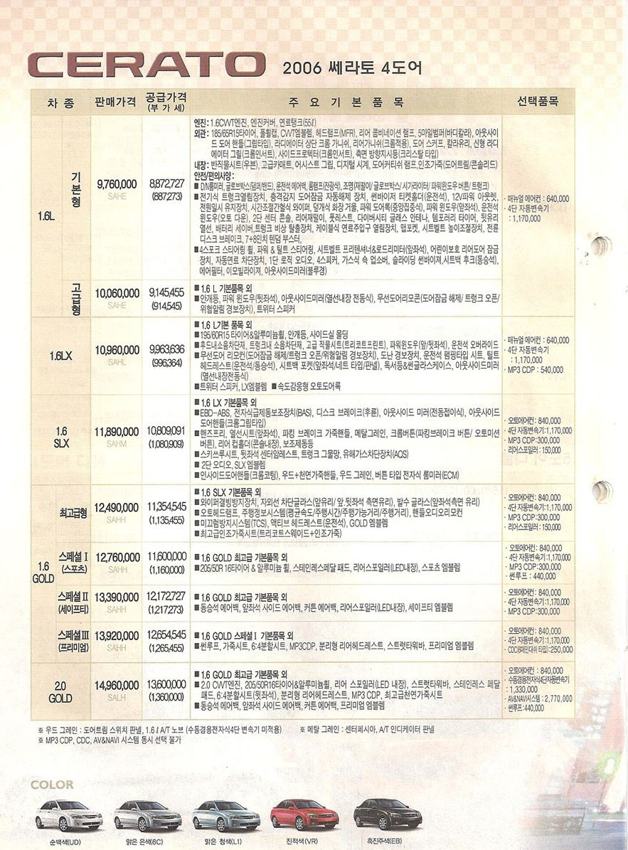2006년 1월 쎄라토 / 쎄라토유로 신차가격표
