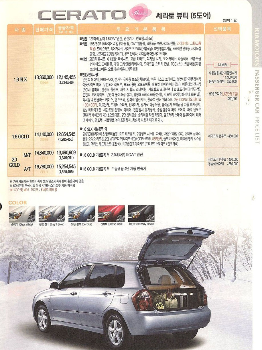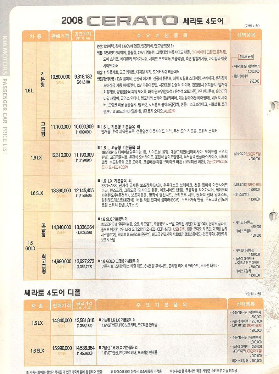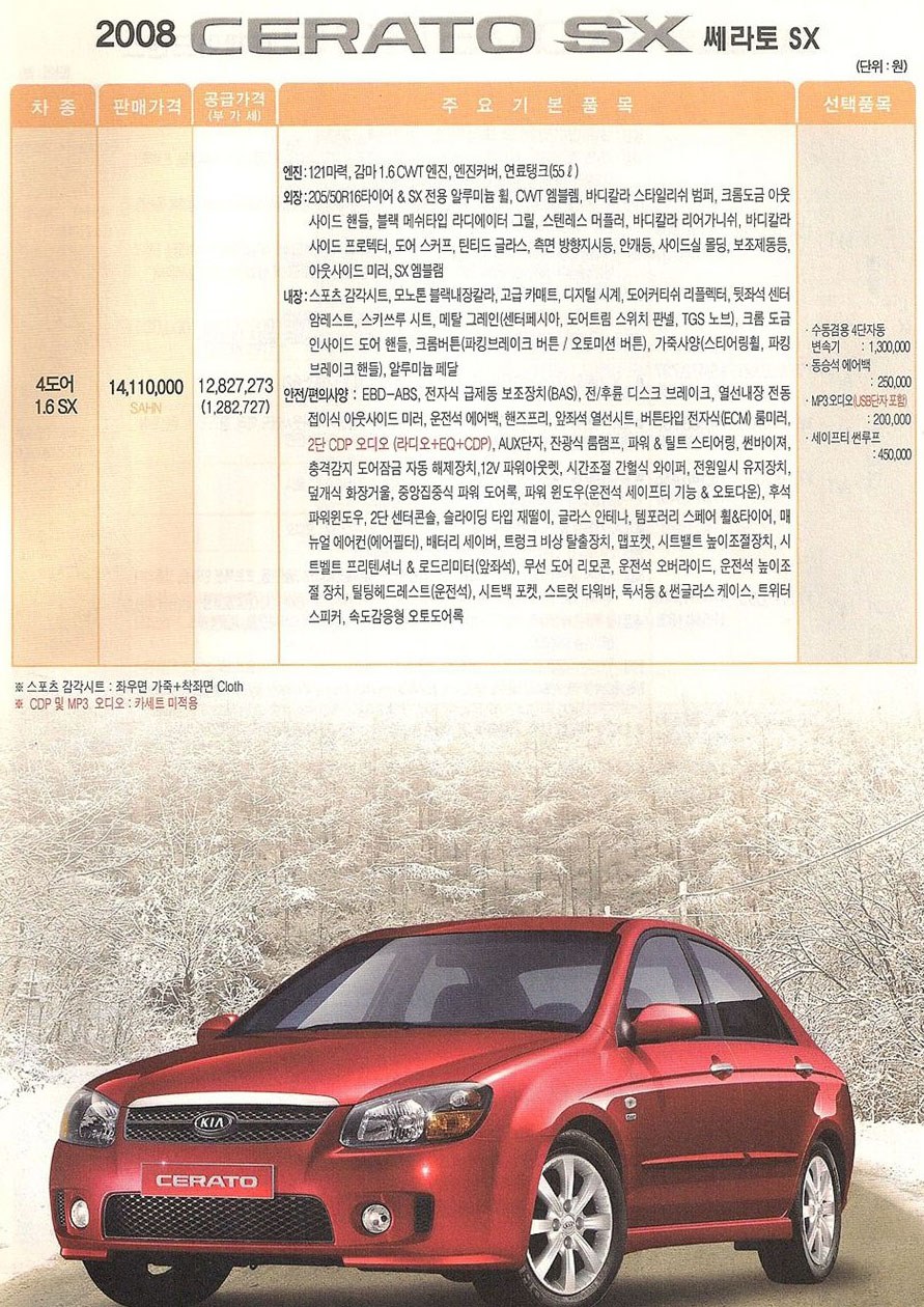 2008년 1월 뉴쎄라토 신차가격표