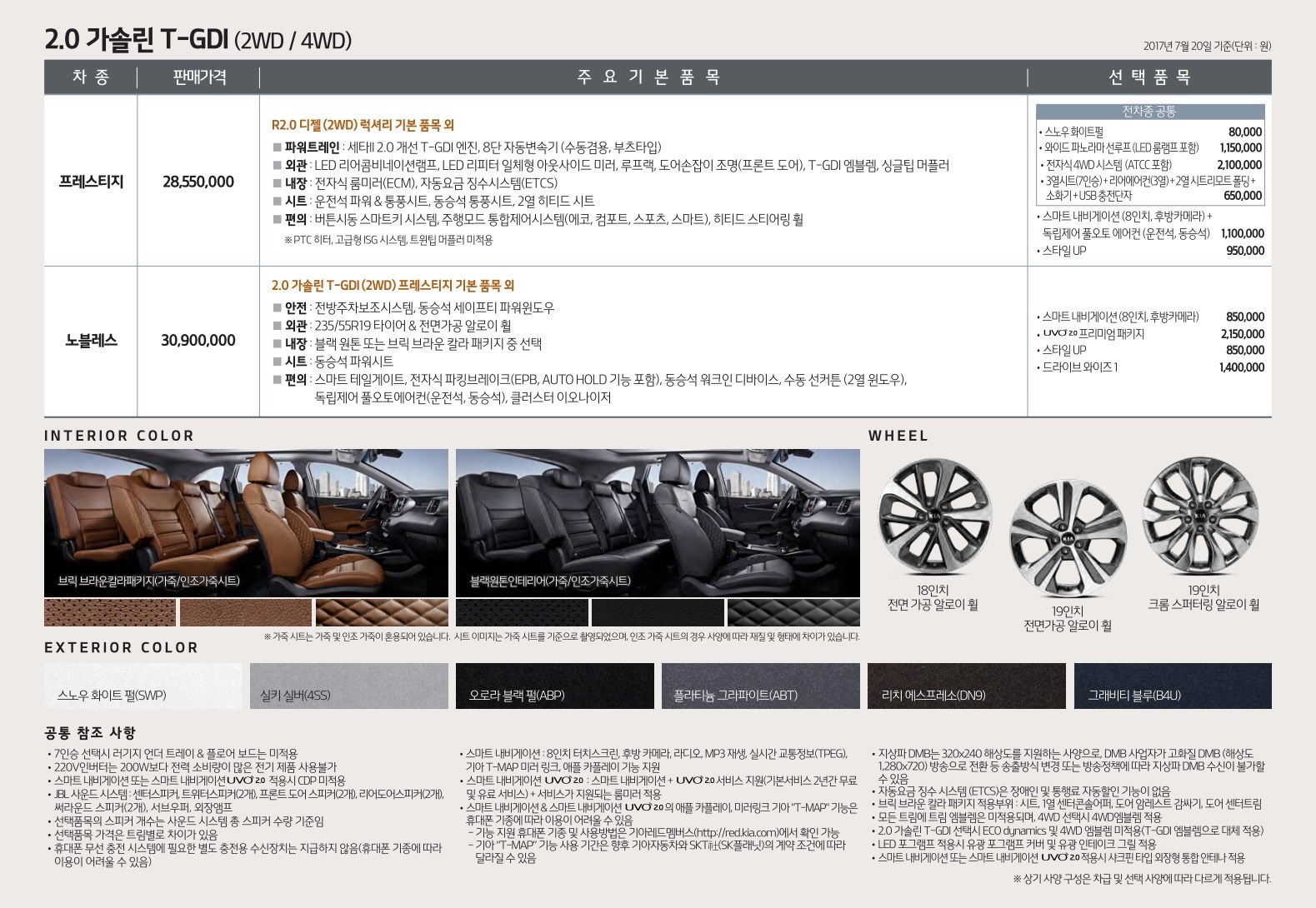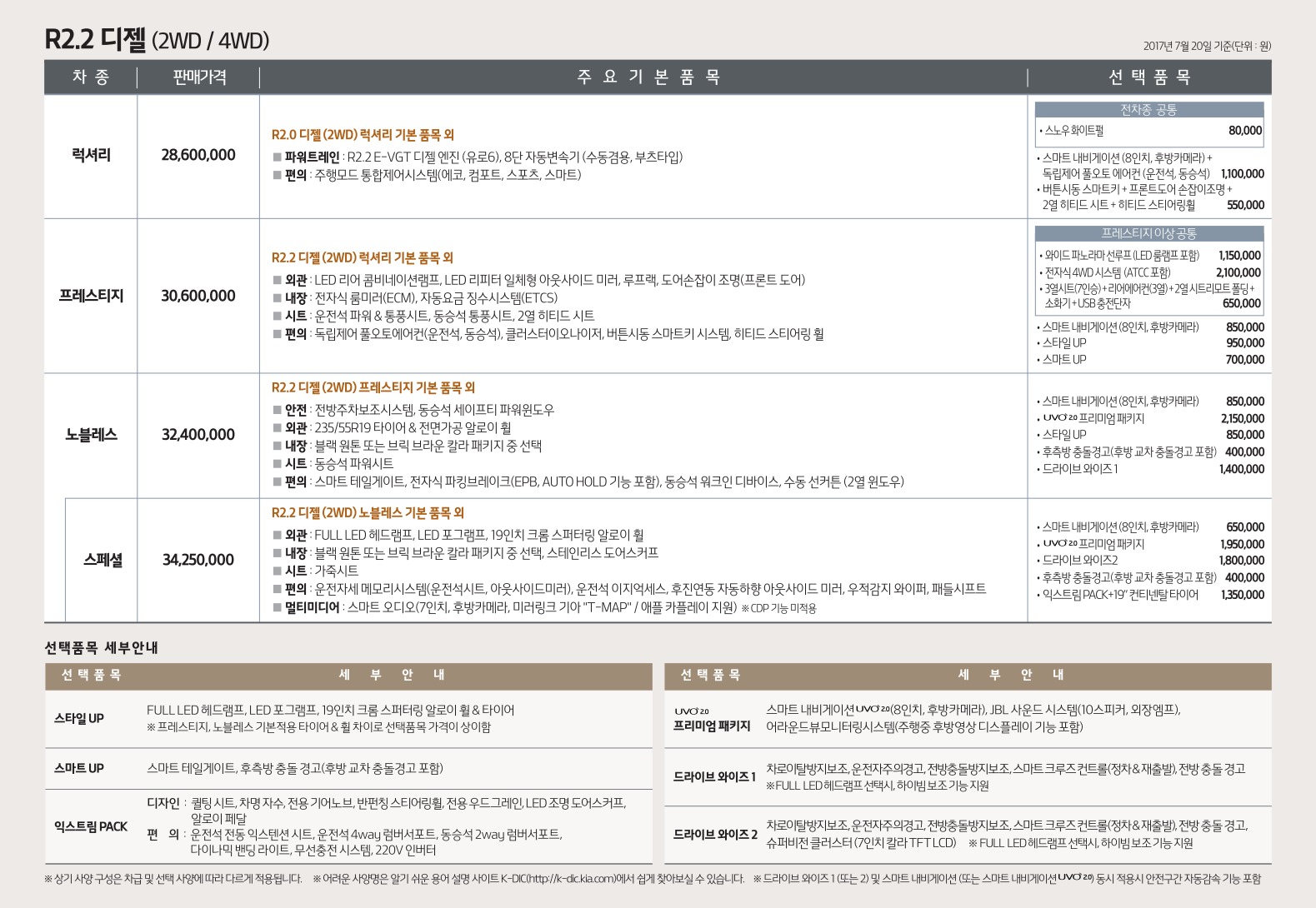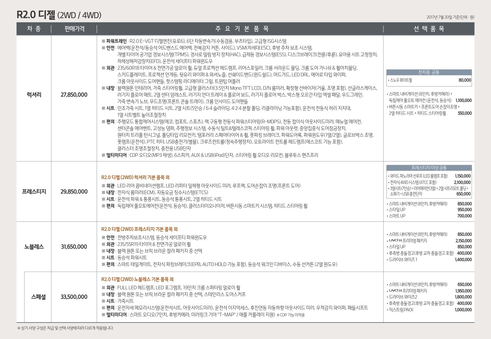 2017년 7월 올뉴쏘렌토 신차가격표