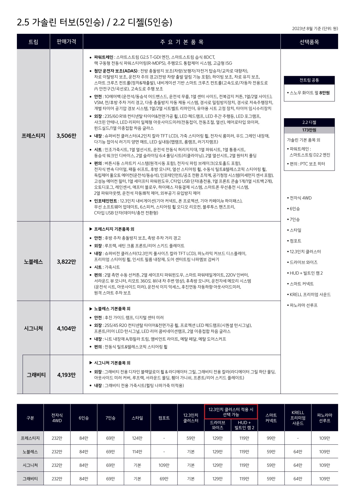 2023년 7월 쏘렌토 신차가격표 (2023년형 쏘렌토)