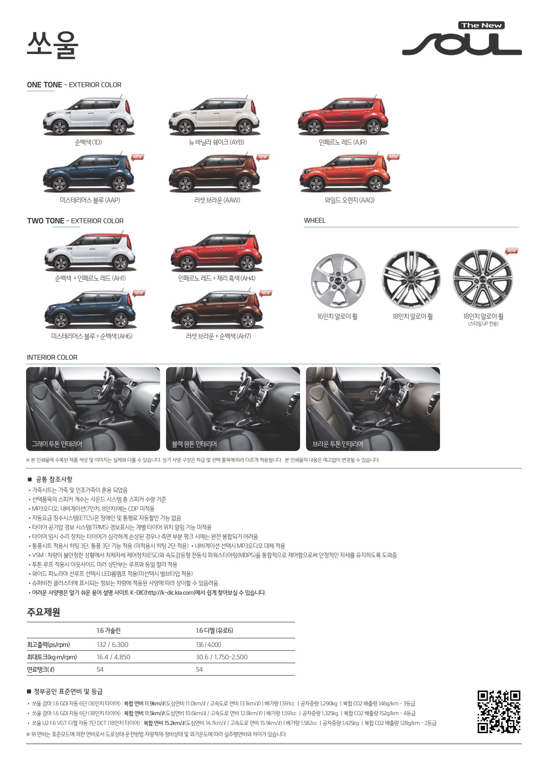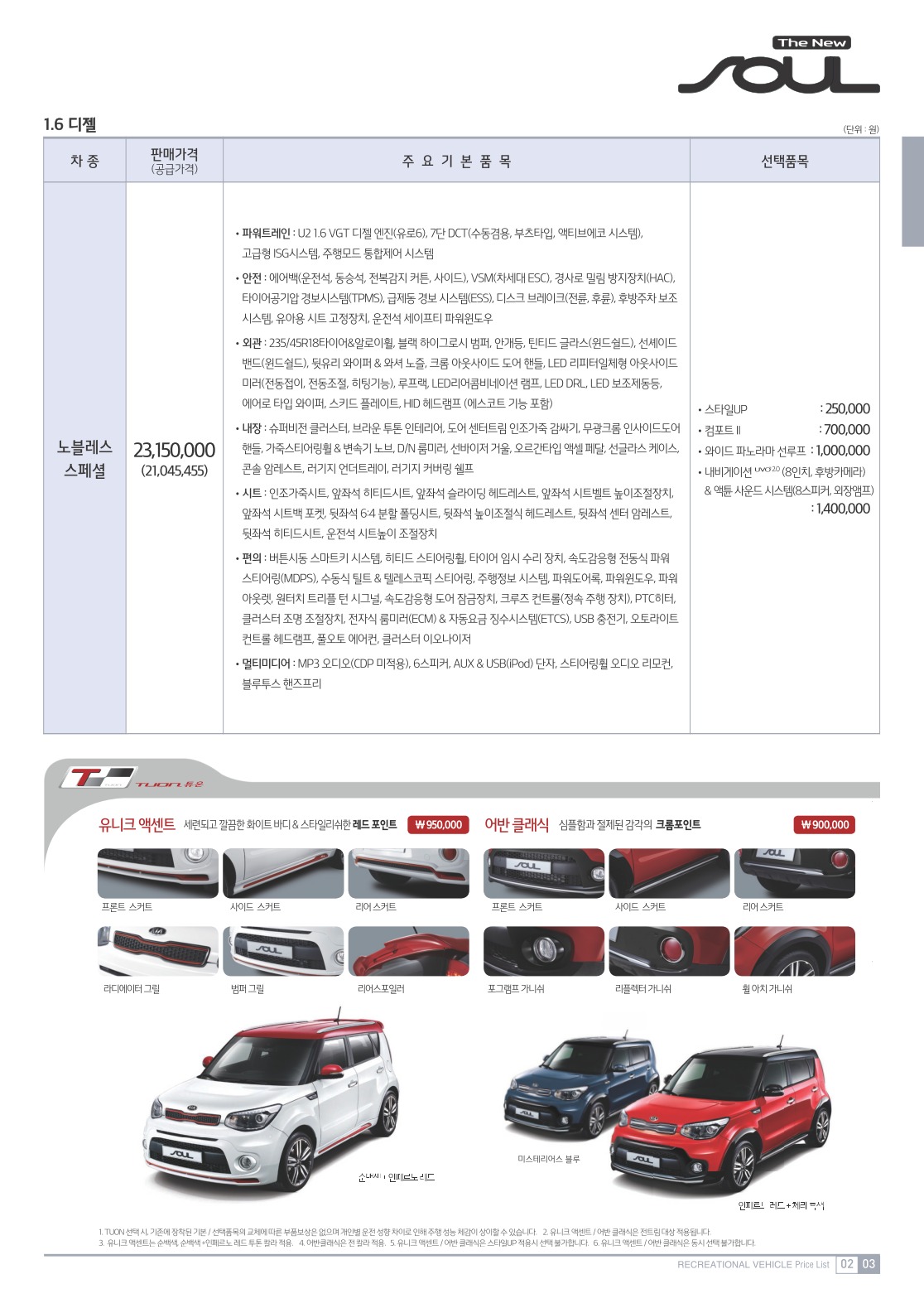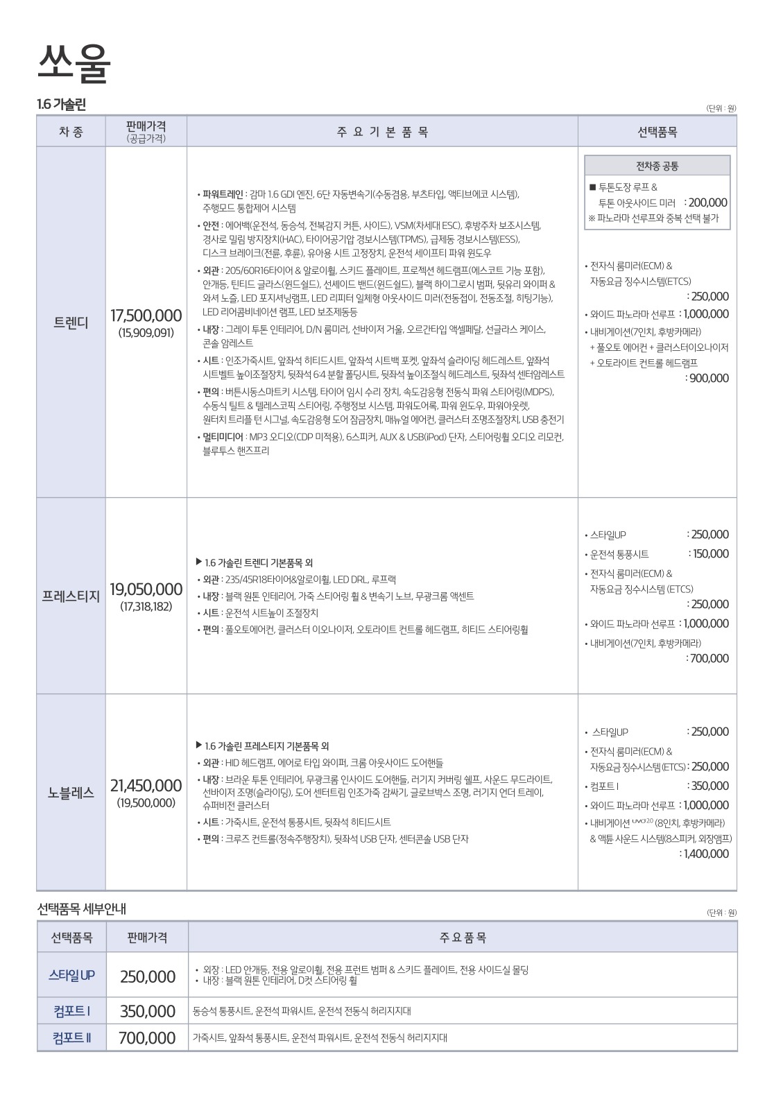 2016년 9월 올뉴쏘울(PS) 신차가격표