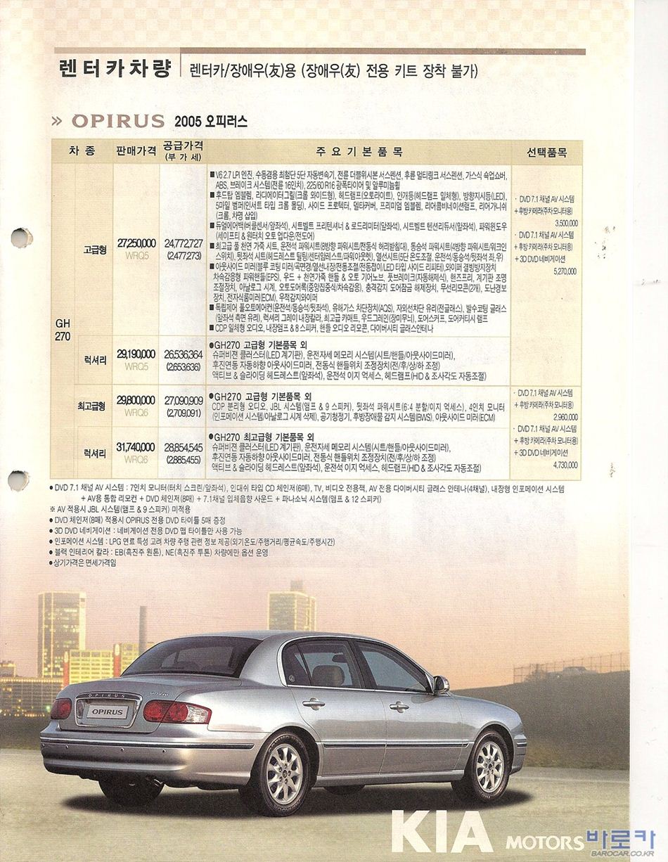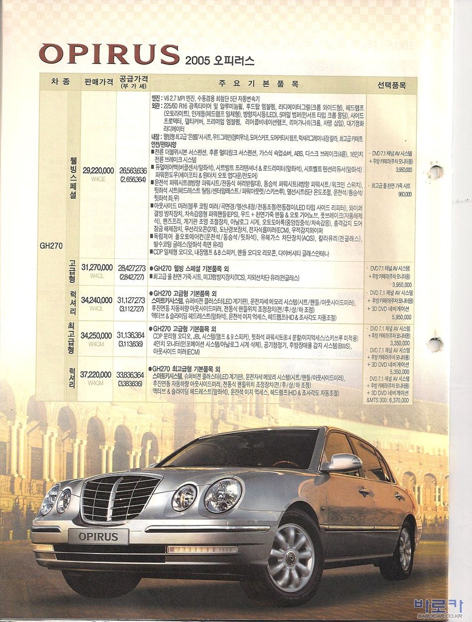 2006년 7월 오피러스 신차가격표 (뉴오피러스)