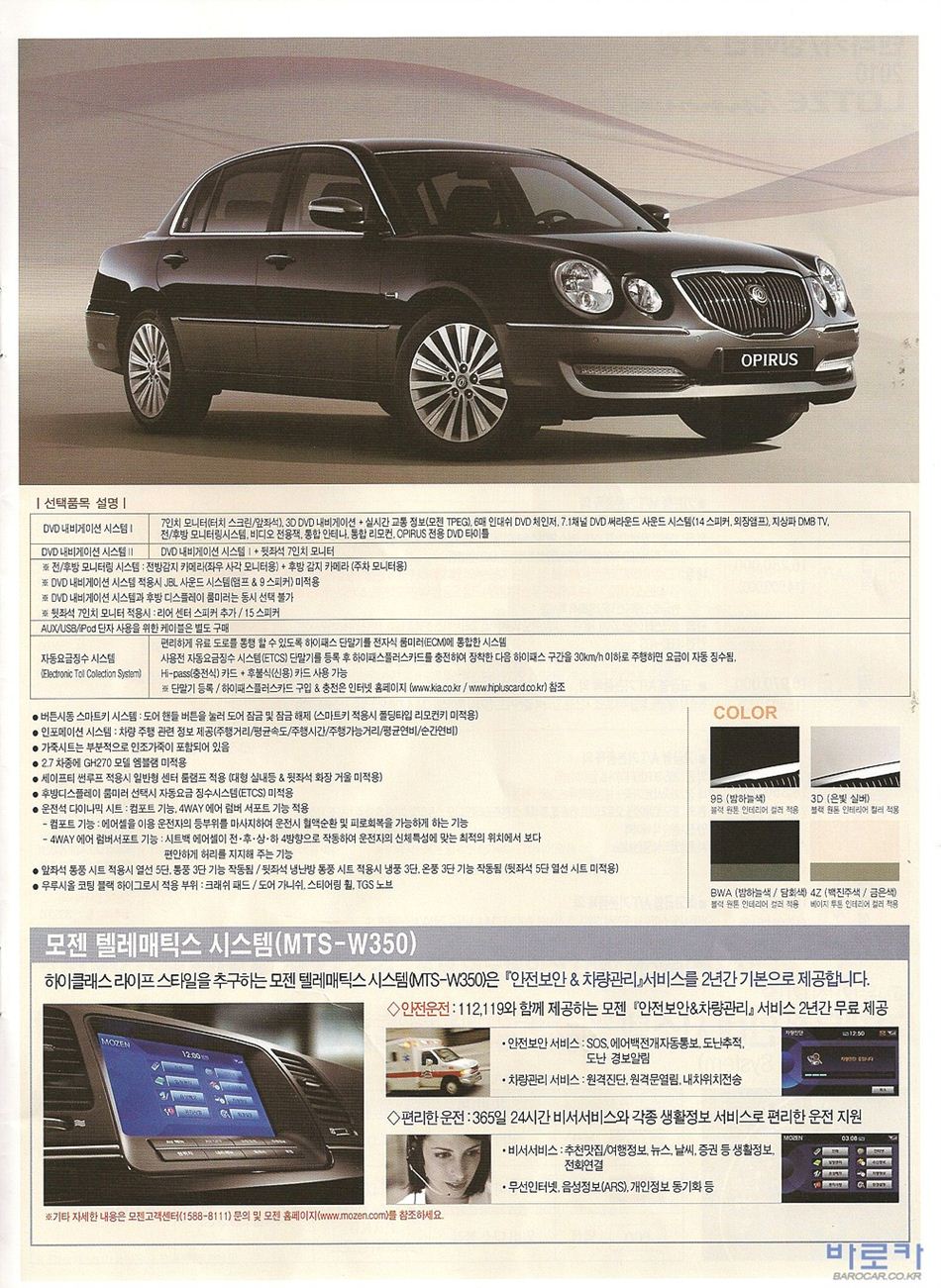 2008년 1월 오피러스 신차가격표