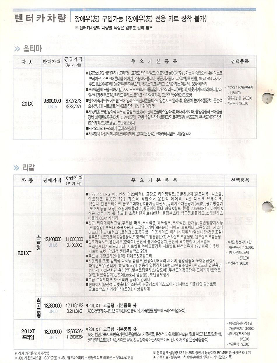 2005년 4월 옵티마 & 옵티마리갈 신차가격표