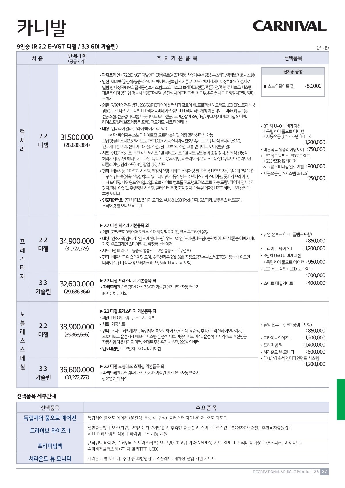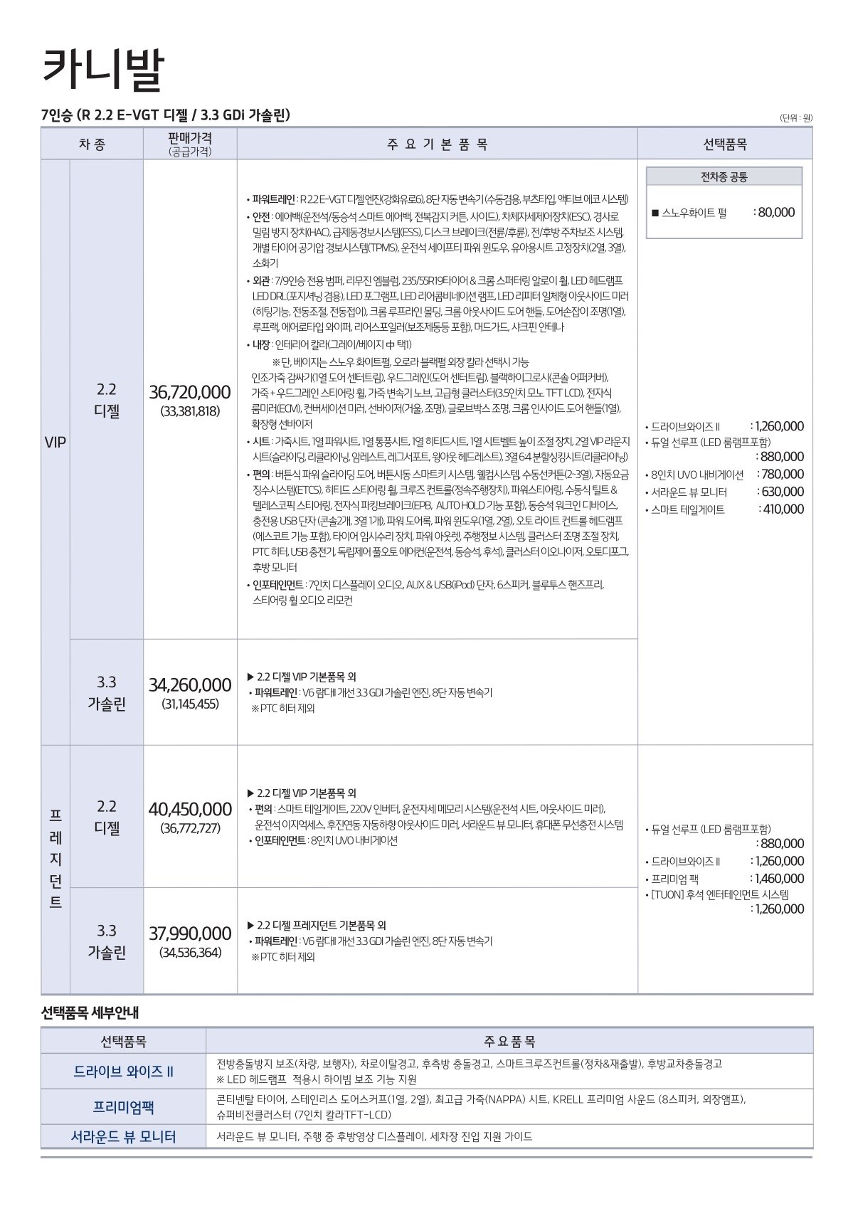 2019년 9월 카니발 신차가격표 (2020년형 카니발 출시)