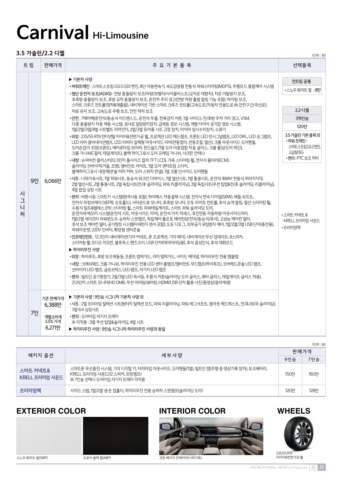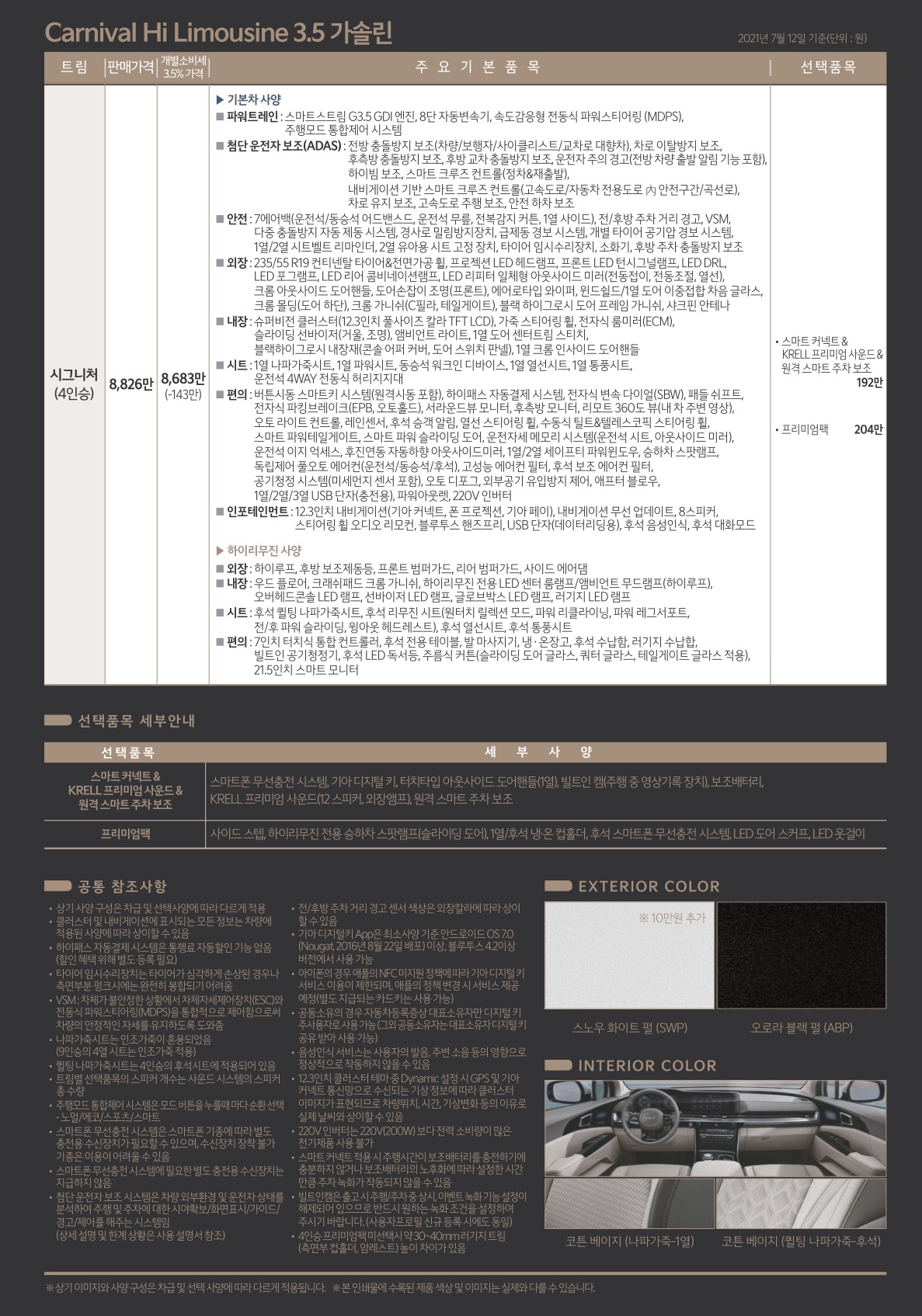 2021년 7월 카니발 신차가격표 (카니발 4인승 출시)