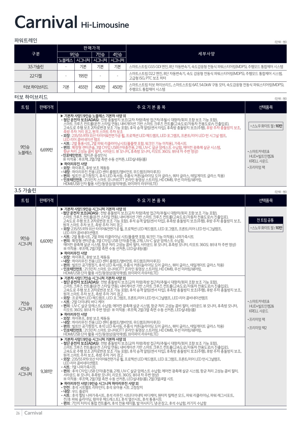 2024년 12월 카니발 신차가격표