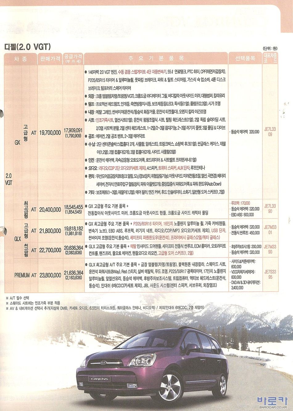 2009년 5월 뉴카렌스 신차가격표 (뉴페이스카렌스)