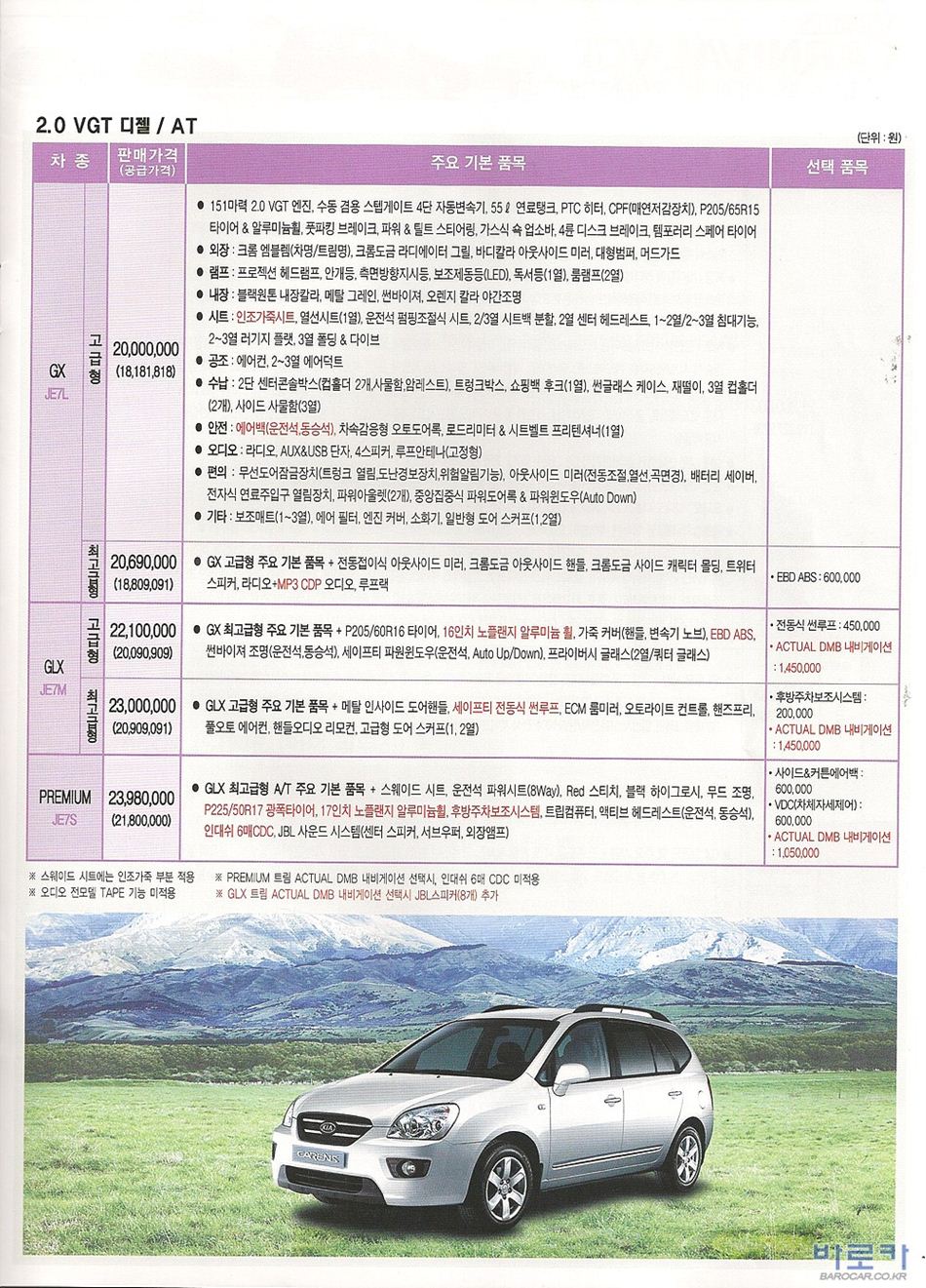 2009년 5월 뉴카렌스 신차가격표 (뉴페이스카렌스)