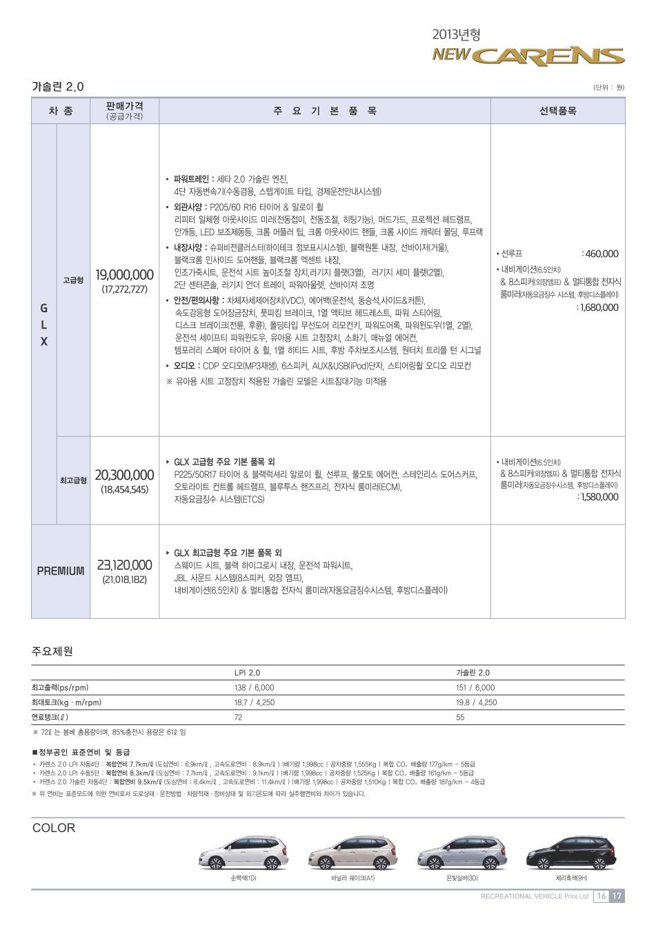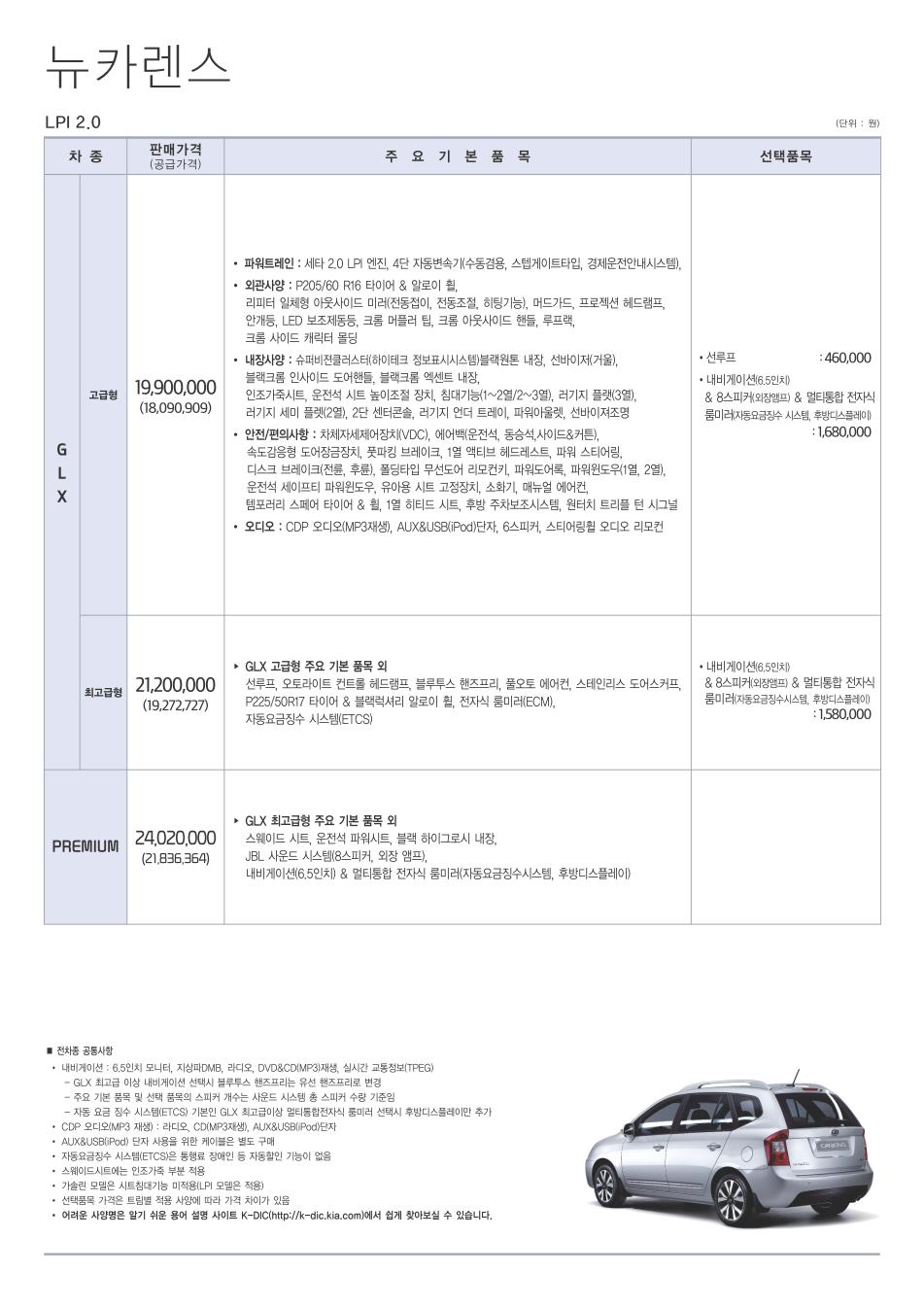2013년 3월 뉴카렌스 신차가격표
