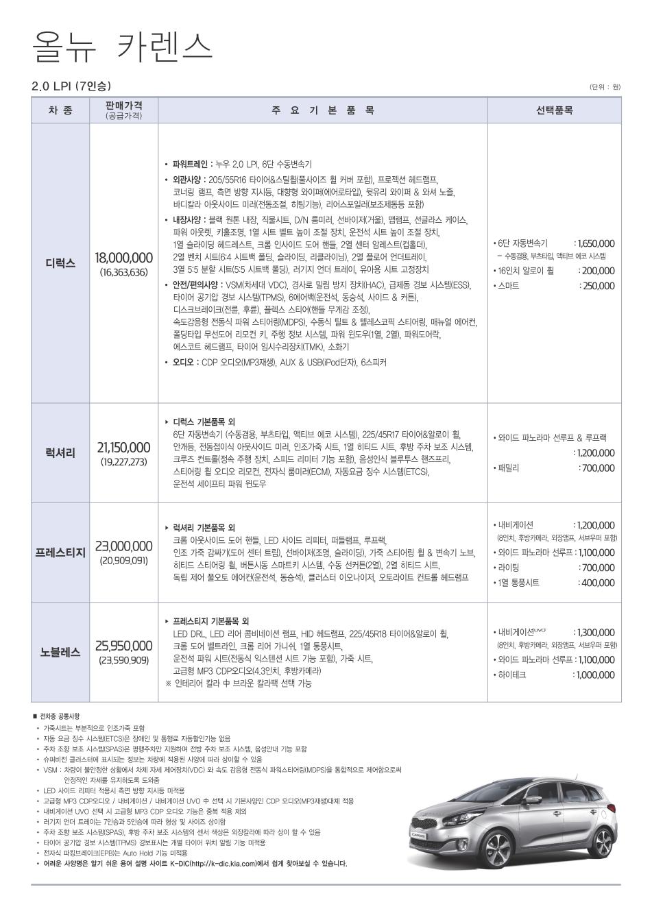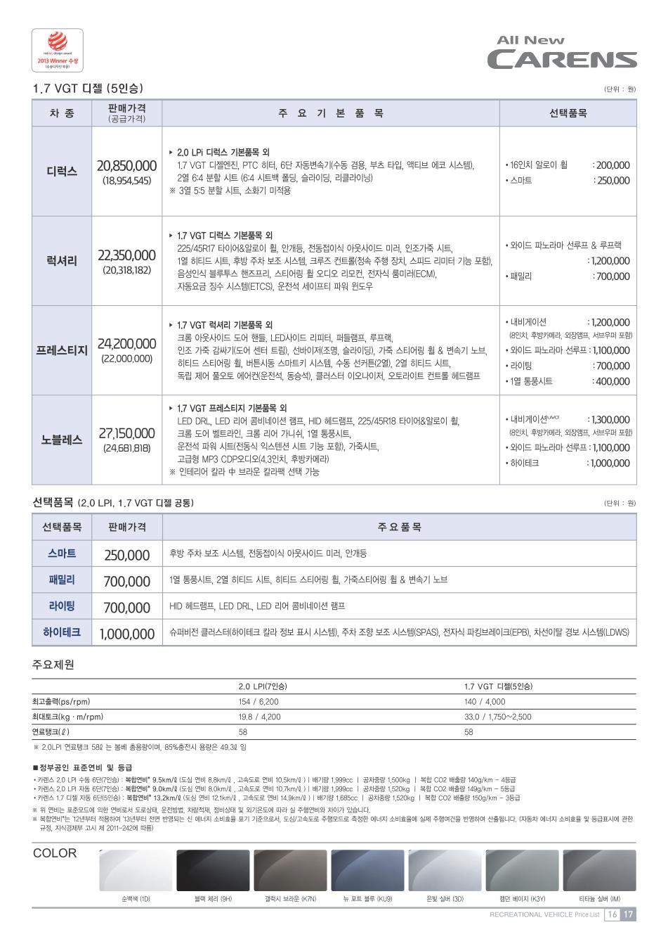 2013년 4월 올뉴카렌스(RP) 신차가격표