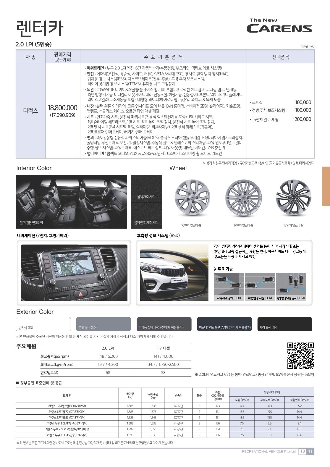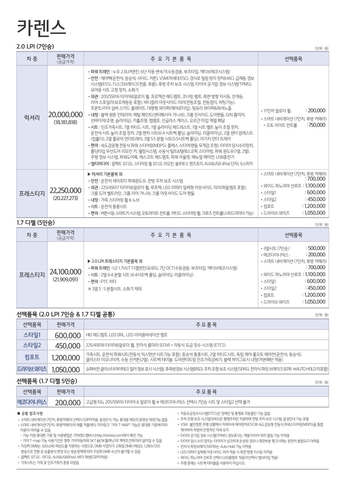 2016년 9월 올뉴카렌스 신차가격표 (더뉴카렌스)