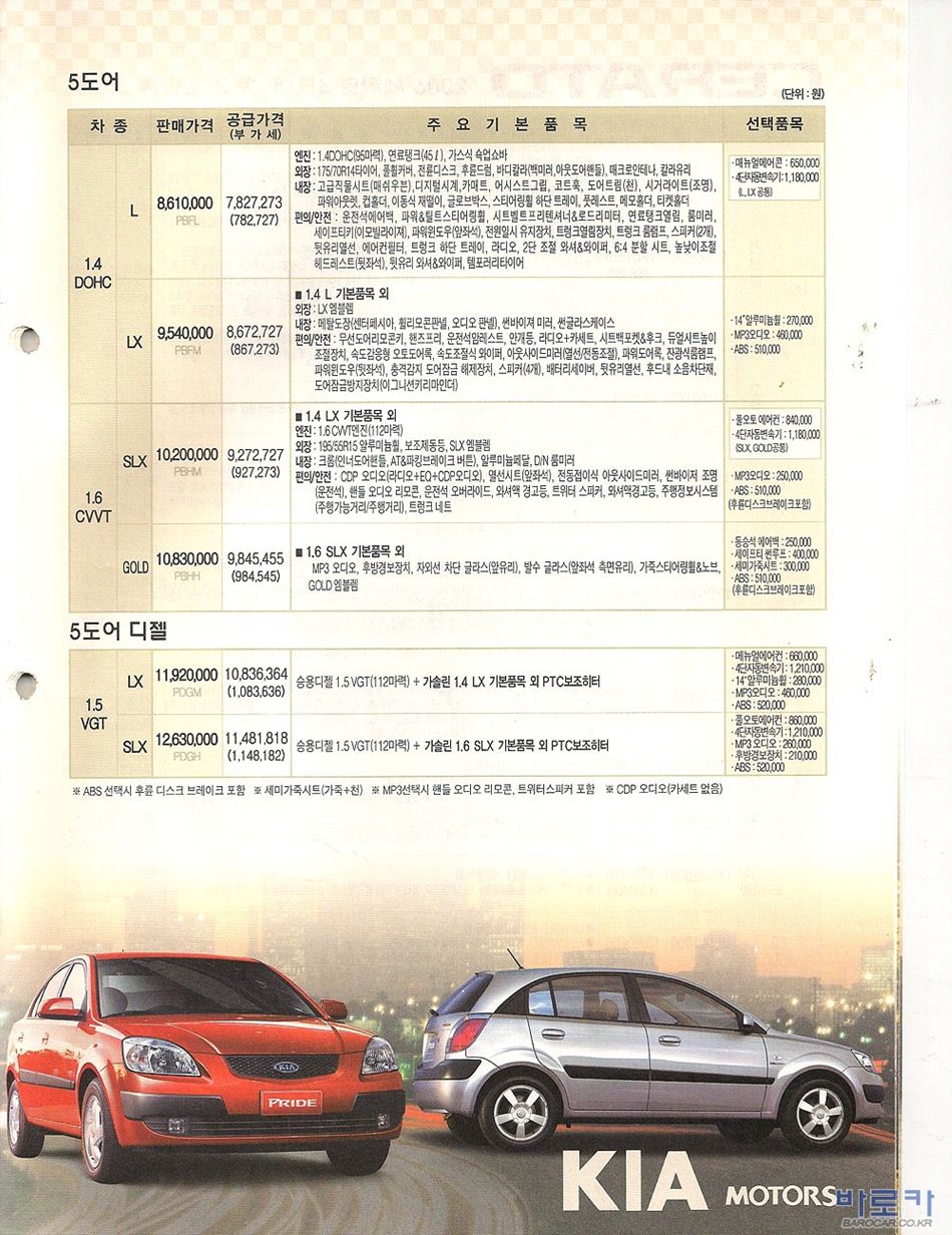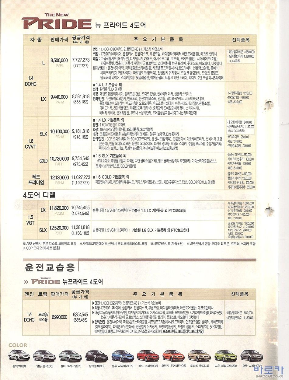 2006년 1월 뉴프라이드(JB) 신차가격표