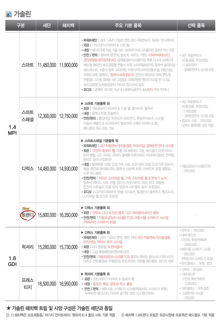 ※ 본 가격표의 모든 저작권은 해당 차량 제조사에 있습니다.