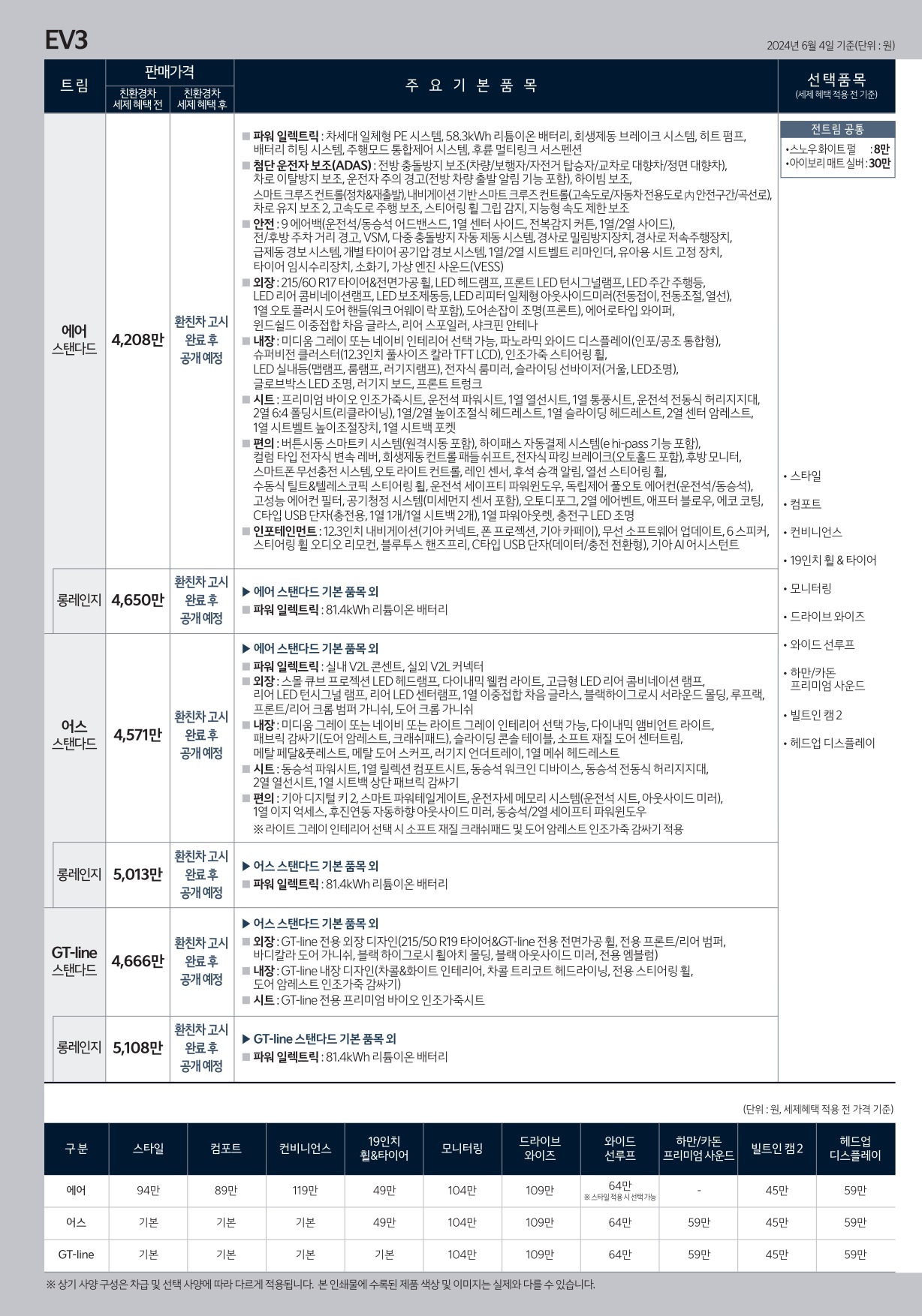 2024년 6월 기아 EV3 신차가격표 (사전계약)