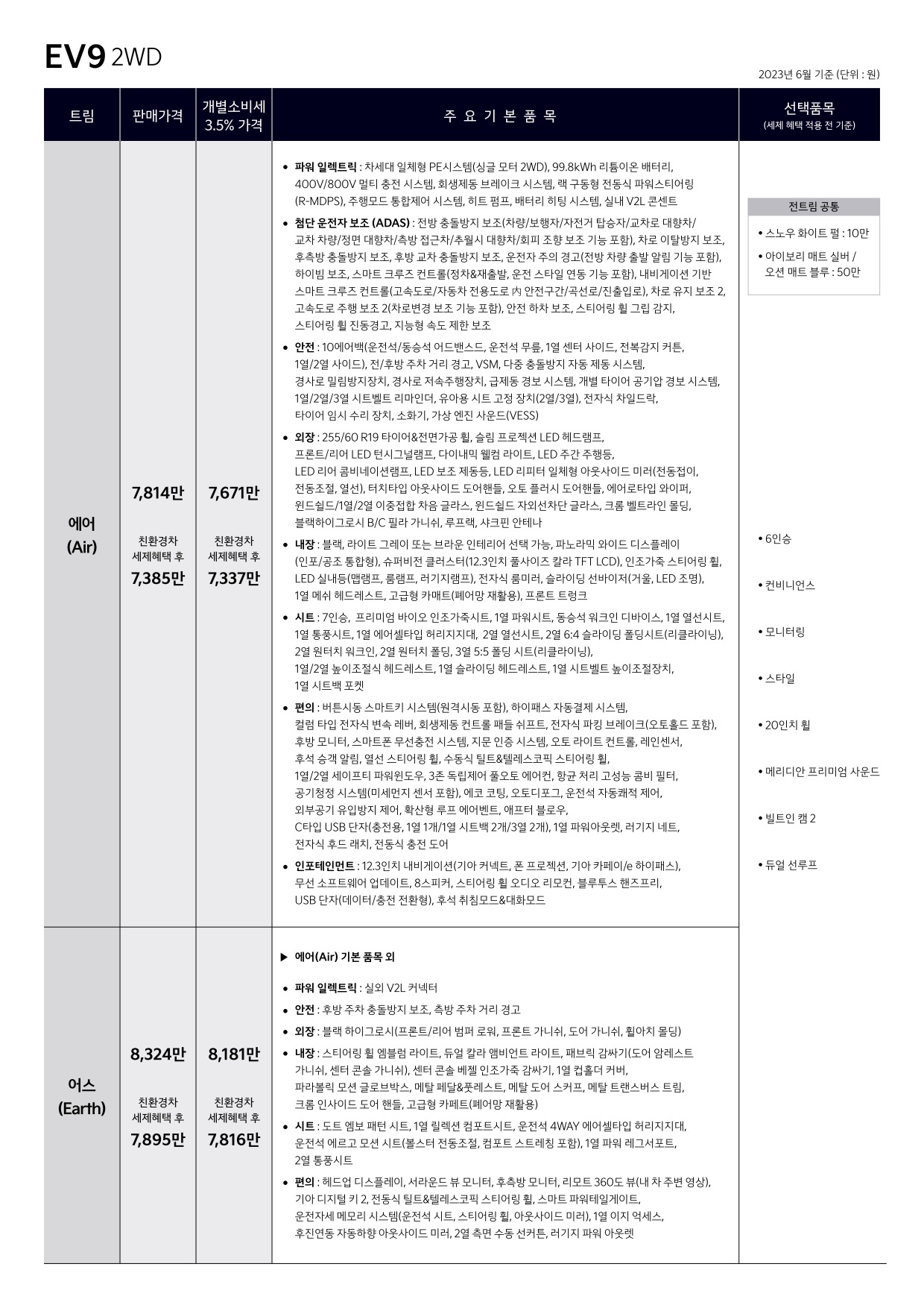 2023년 6월 EV9 신차가격표 (EV9 출시)