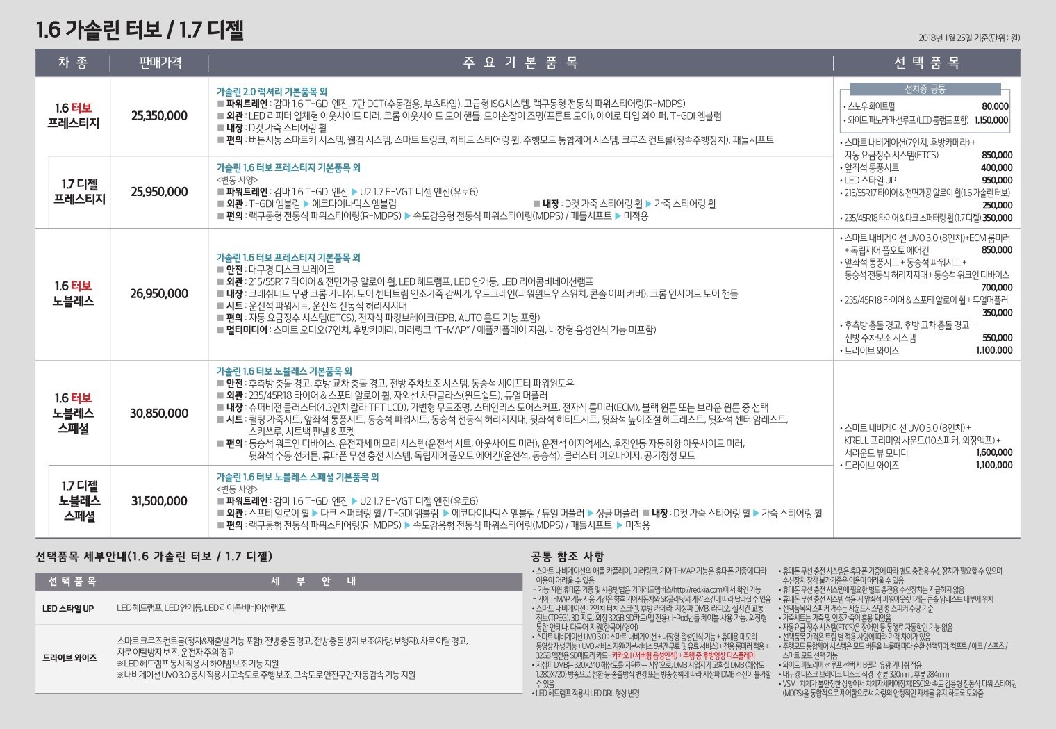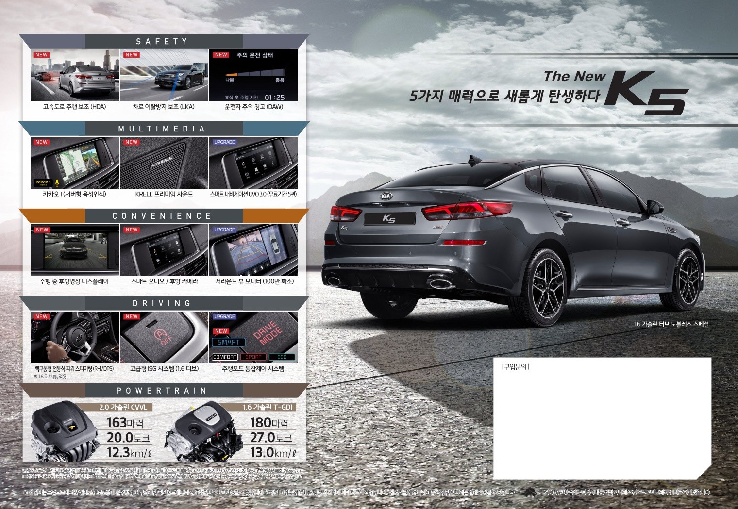 2018년 1월 K5 신차가격표 (더 뉴 K5 출시)