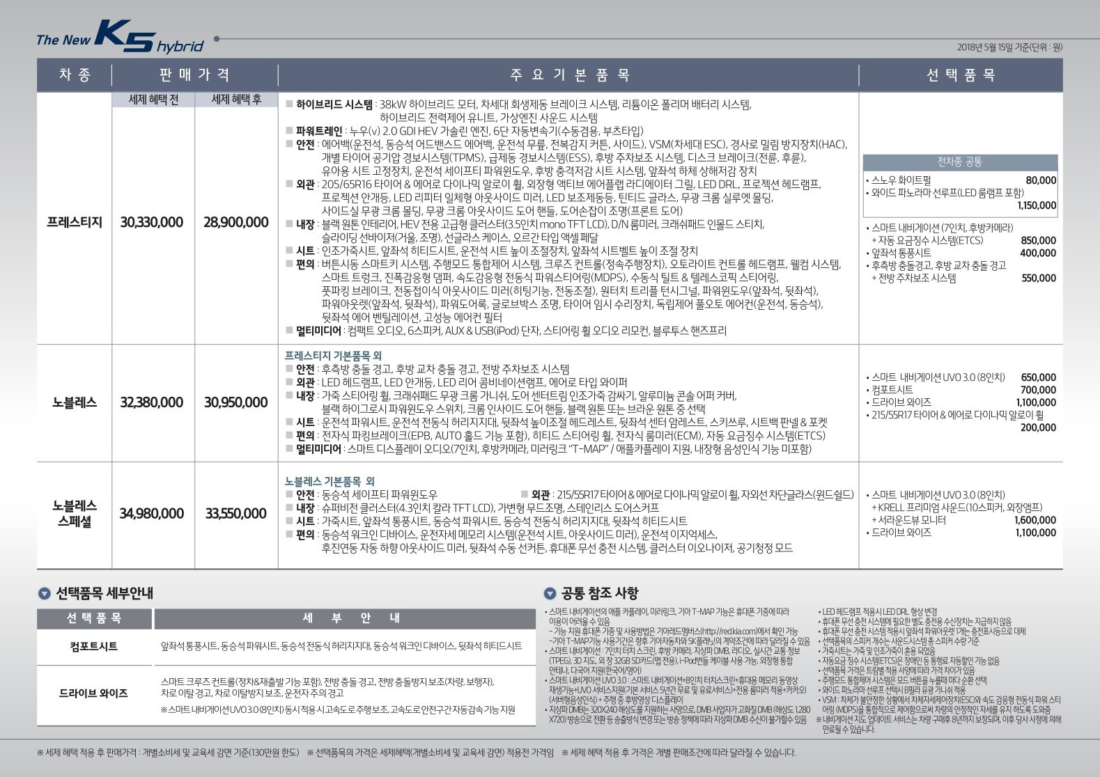 2018년 5월 K5 하이브리드 신차가격표 (더뉴K5 하이브리드 신차가격표)