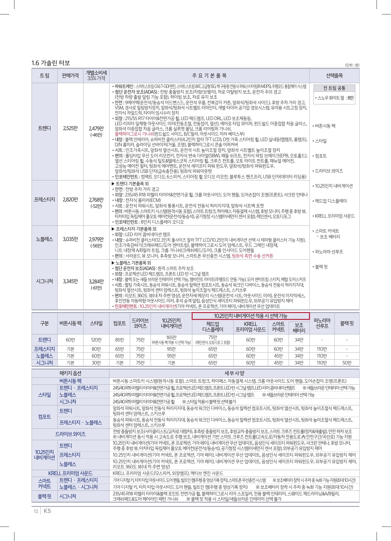 2021년 6월 K5 신차가격표 (2022년형 K5 출시)