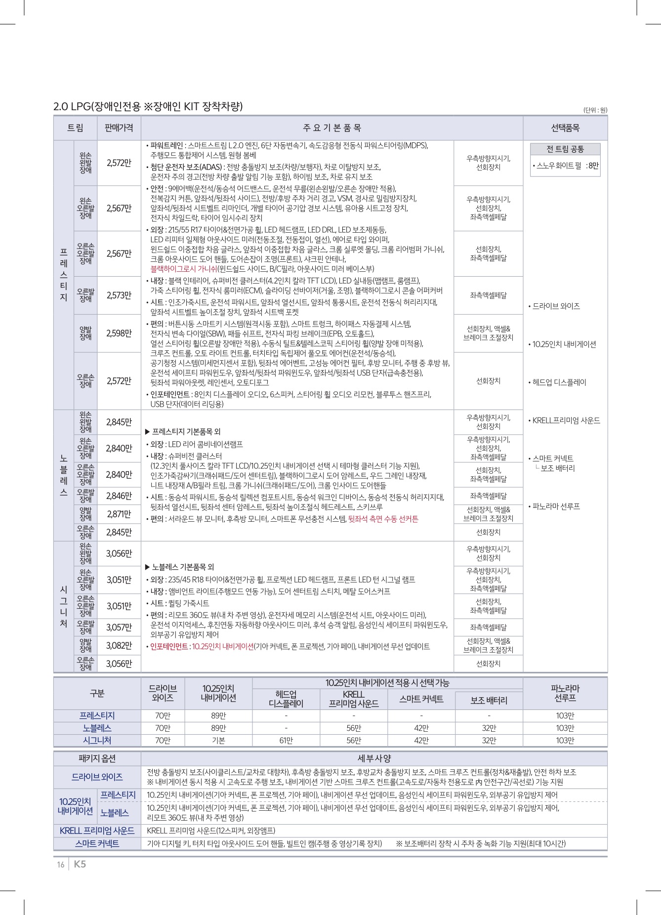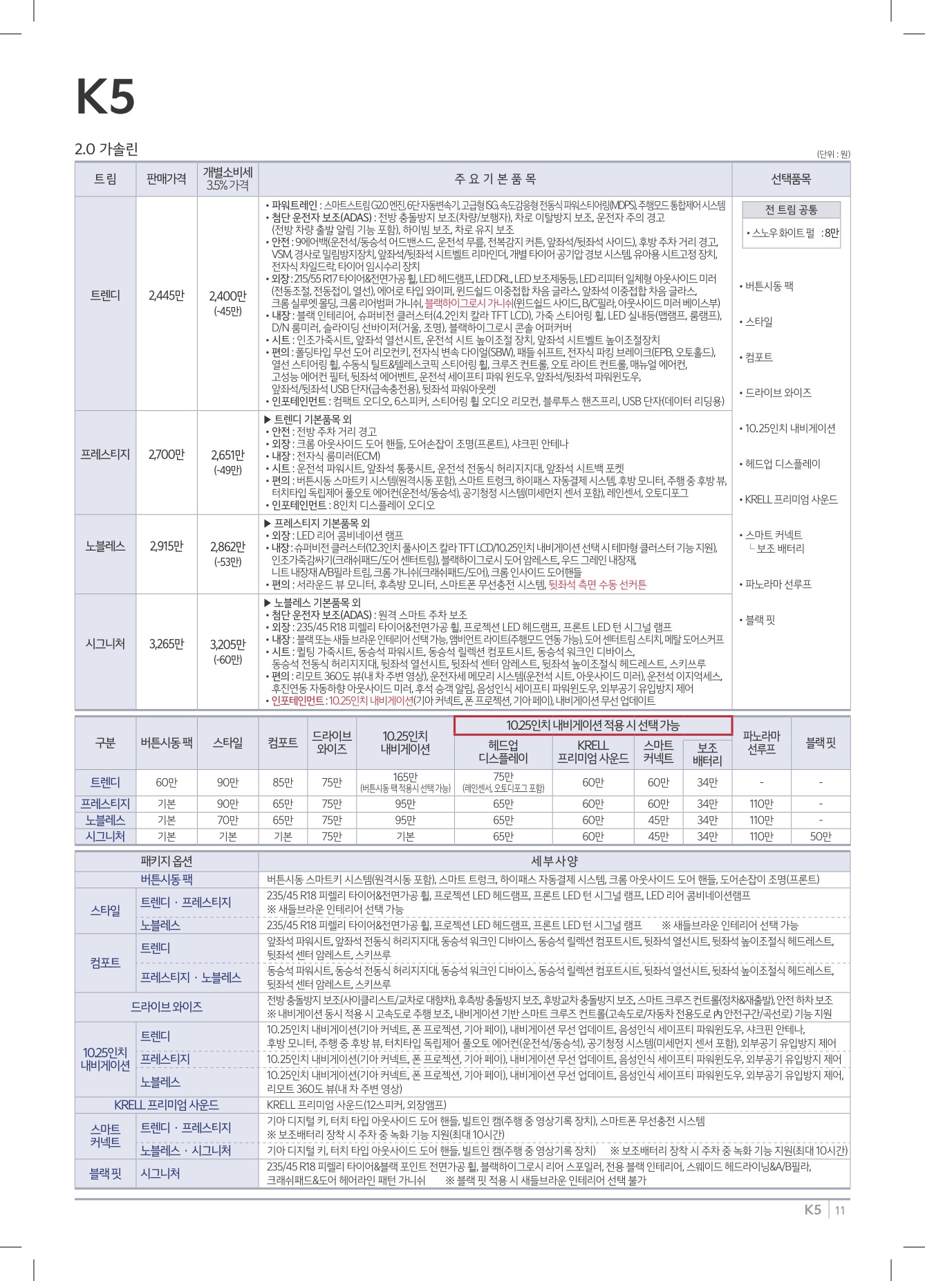 2023년 10월 더뉴 K5 신차가격표 (3세대 K5 페이스리프트 사전계약용)