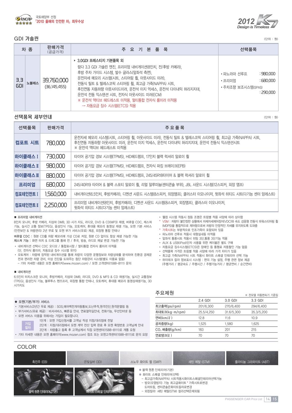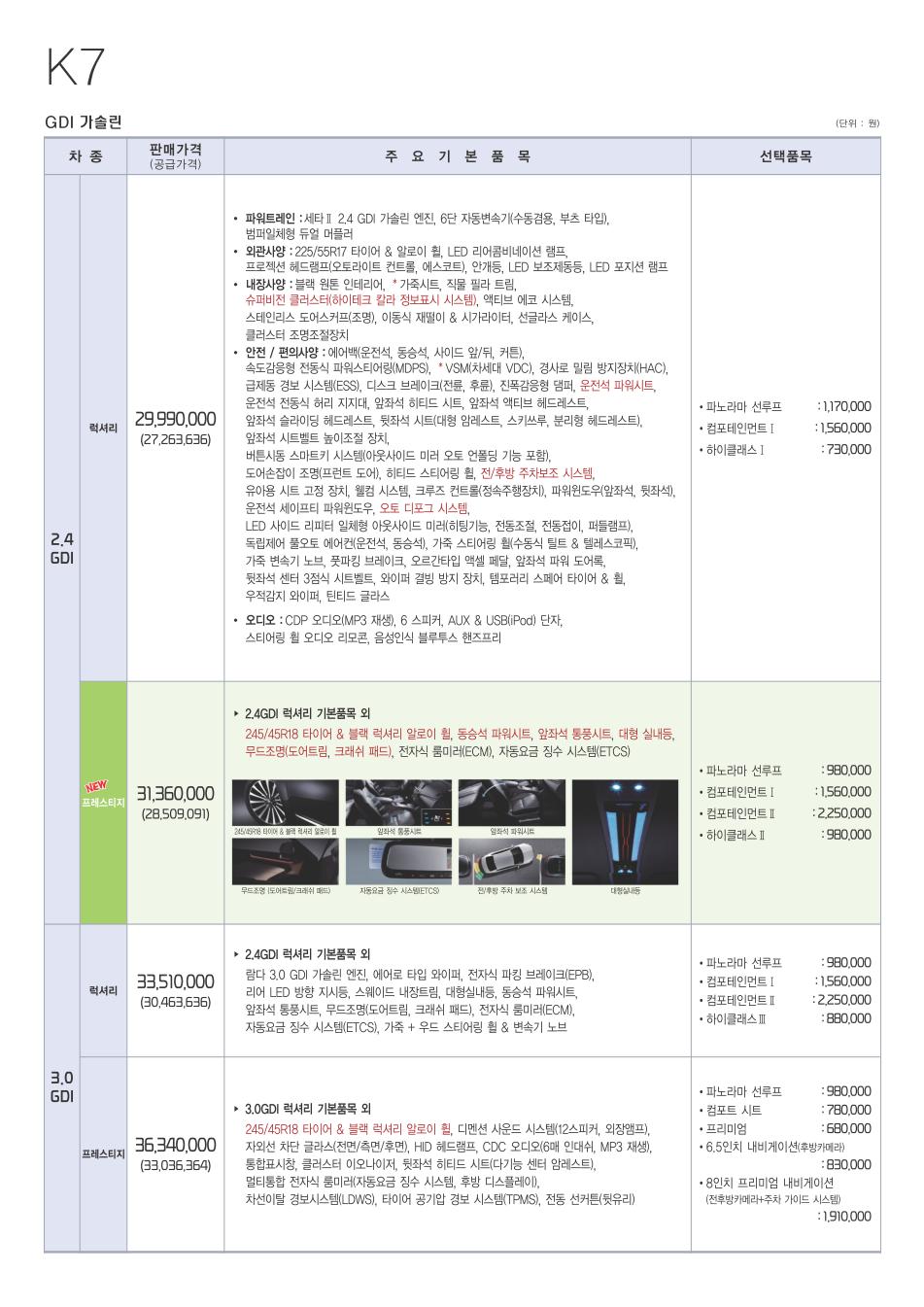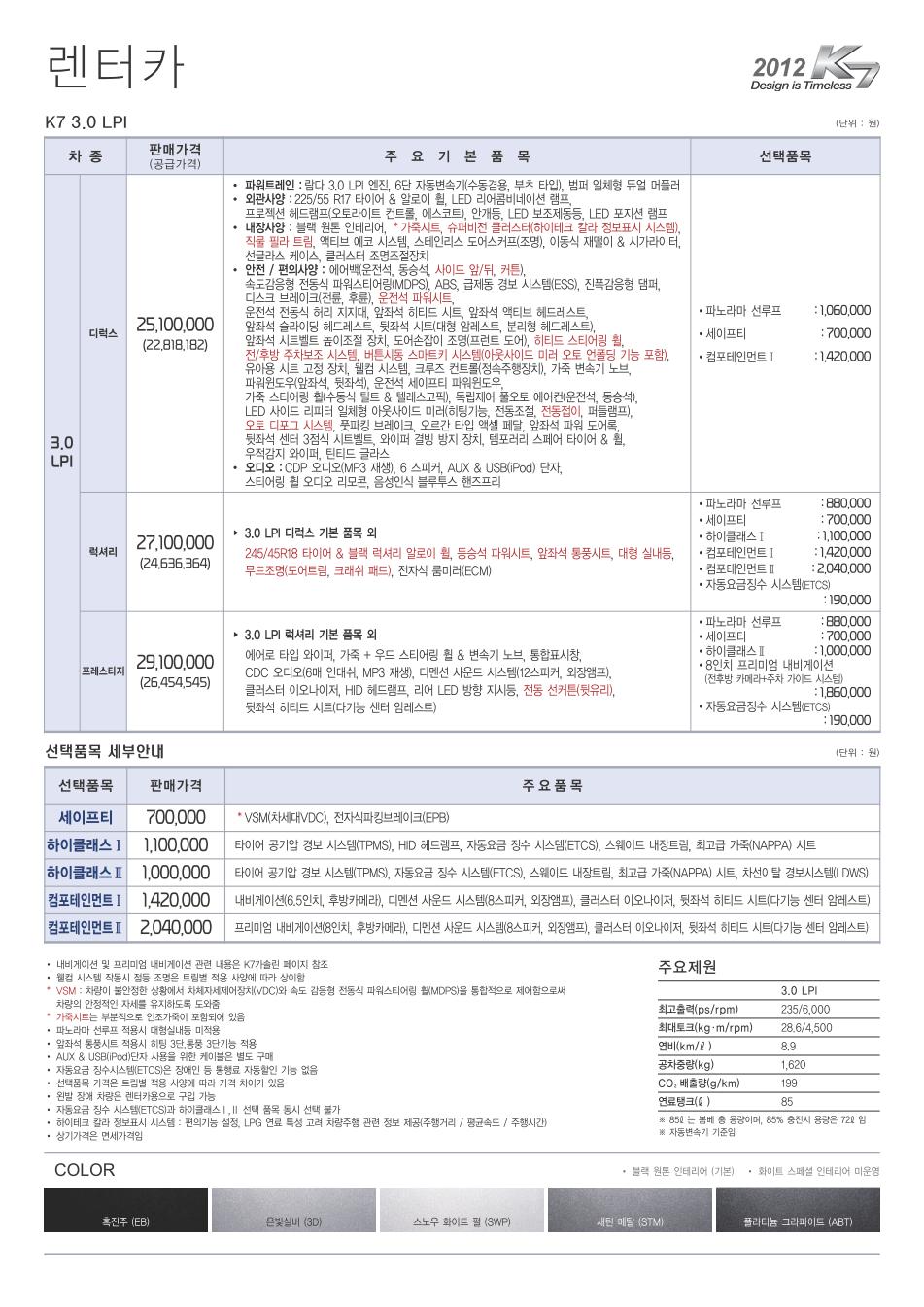 2012년 3월 K7 신차가격표