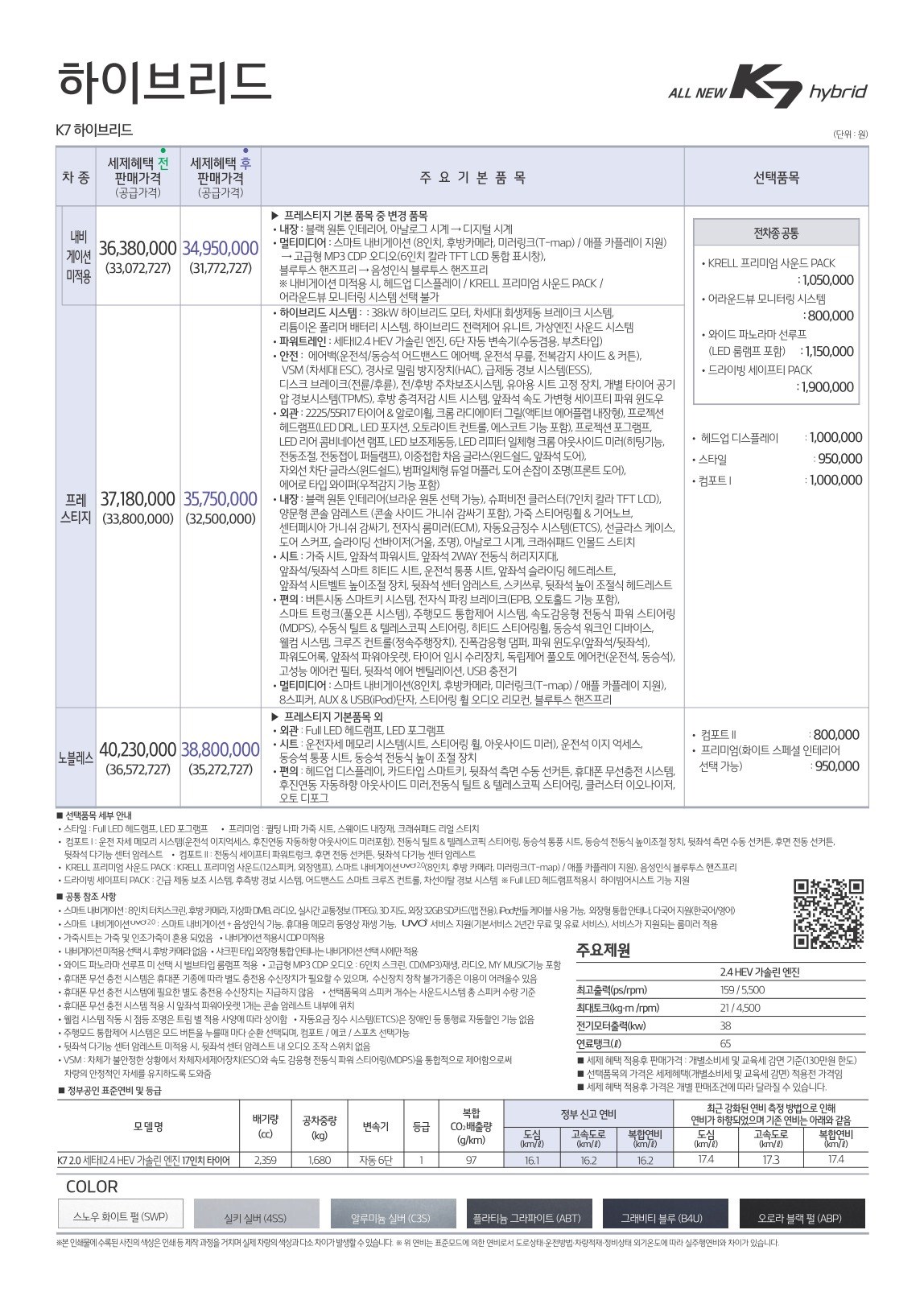 ※ 본 가격표의 모든 저작권은 해당 차량 제조사에 있습니다.