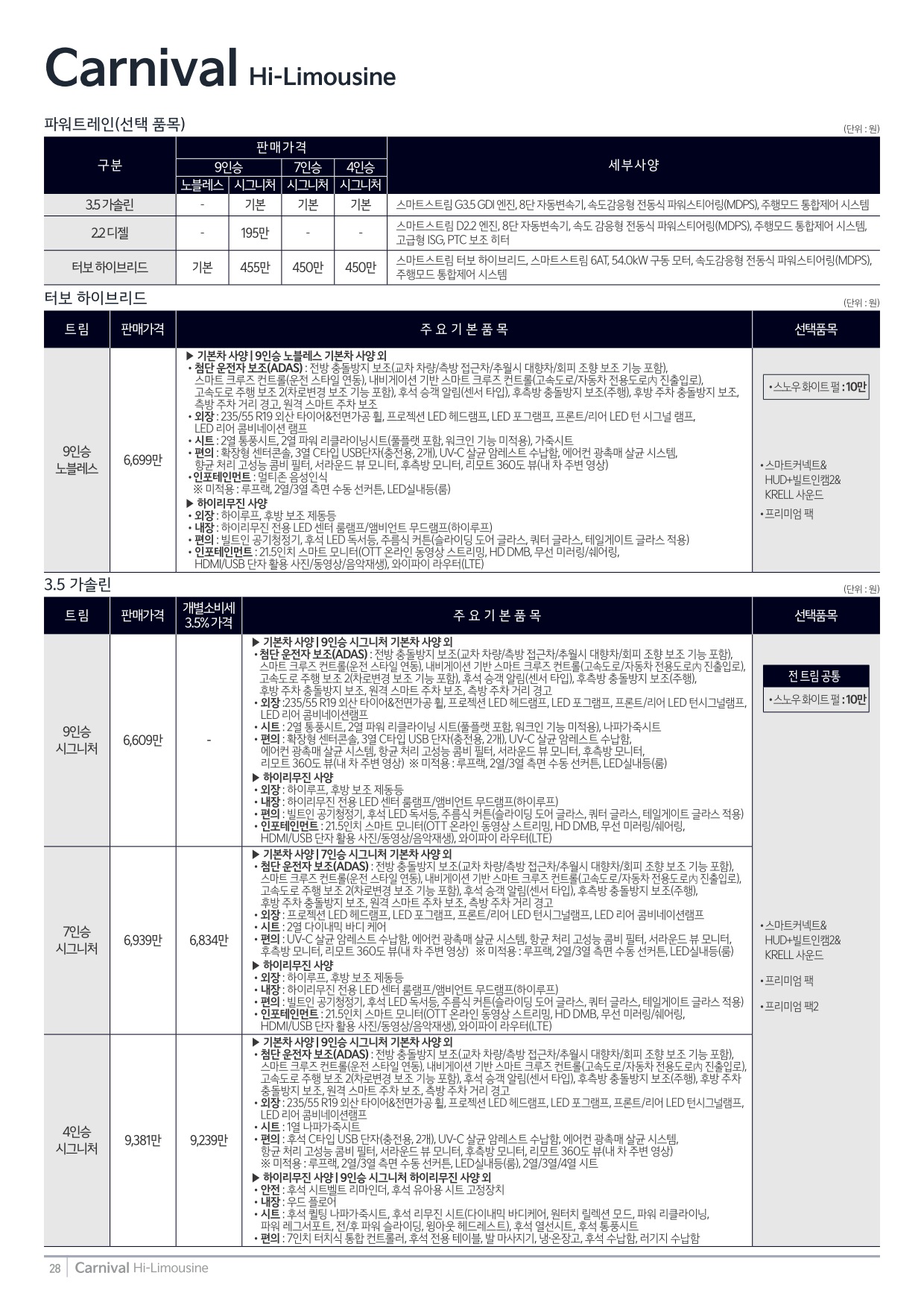 2025년 5월 카니발 하이리무진 신차가격표