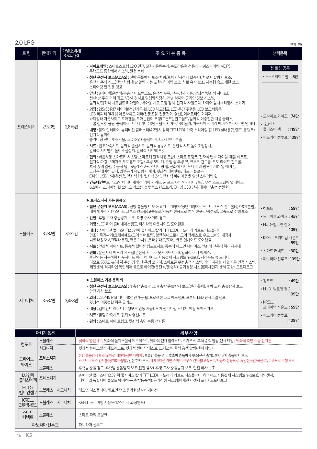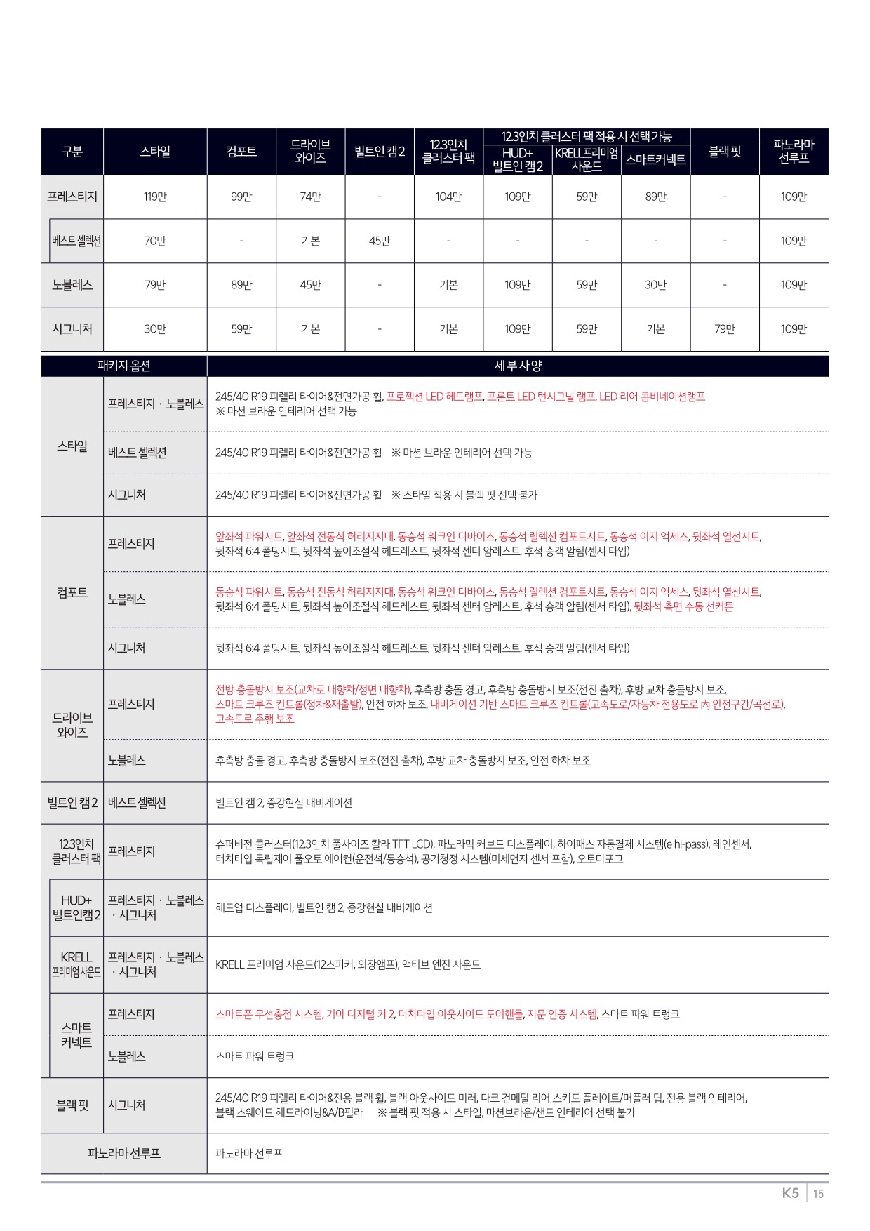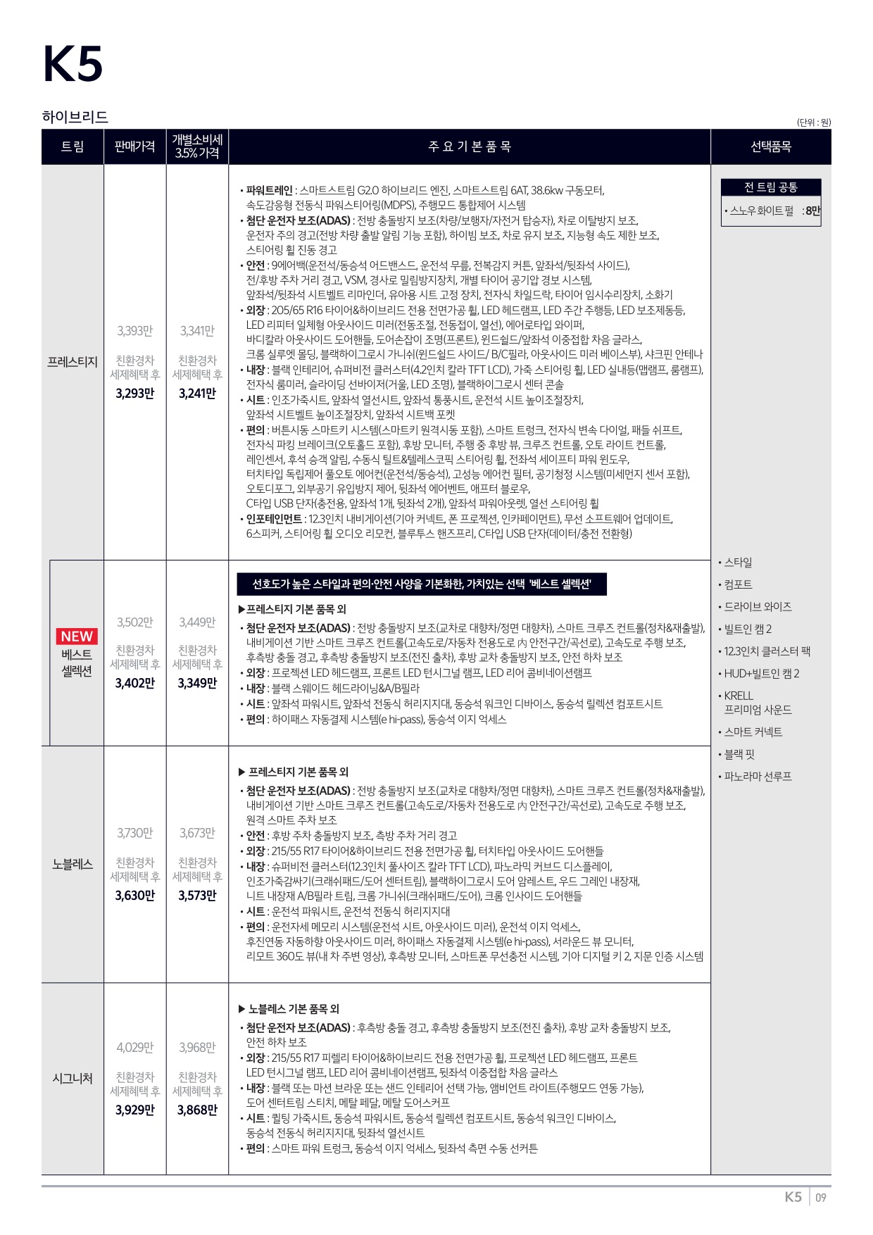 2025년 6월 K5 신차가격표 (2026년형 K5 출시)