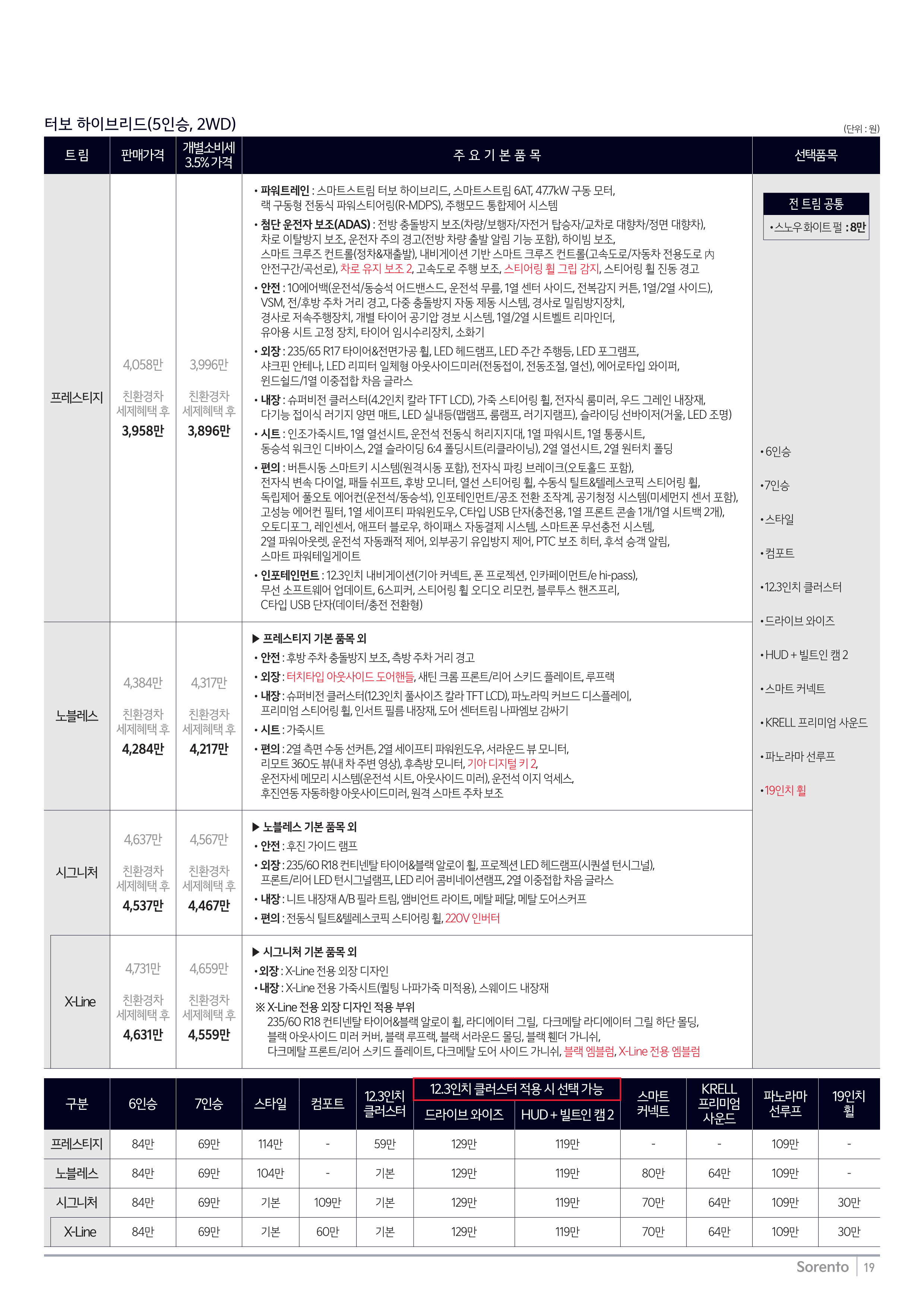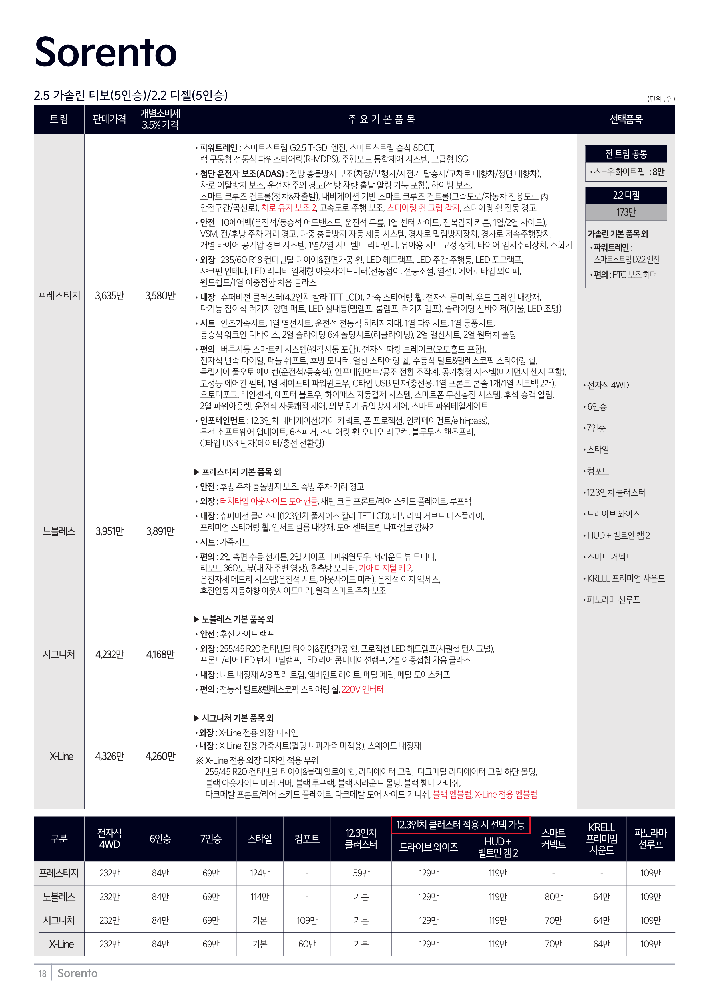 2025년 7월 쏘렌토 신차가격표 (2026년형 출시)