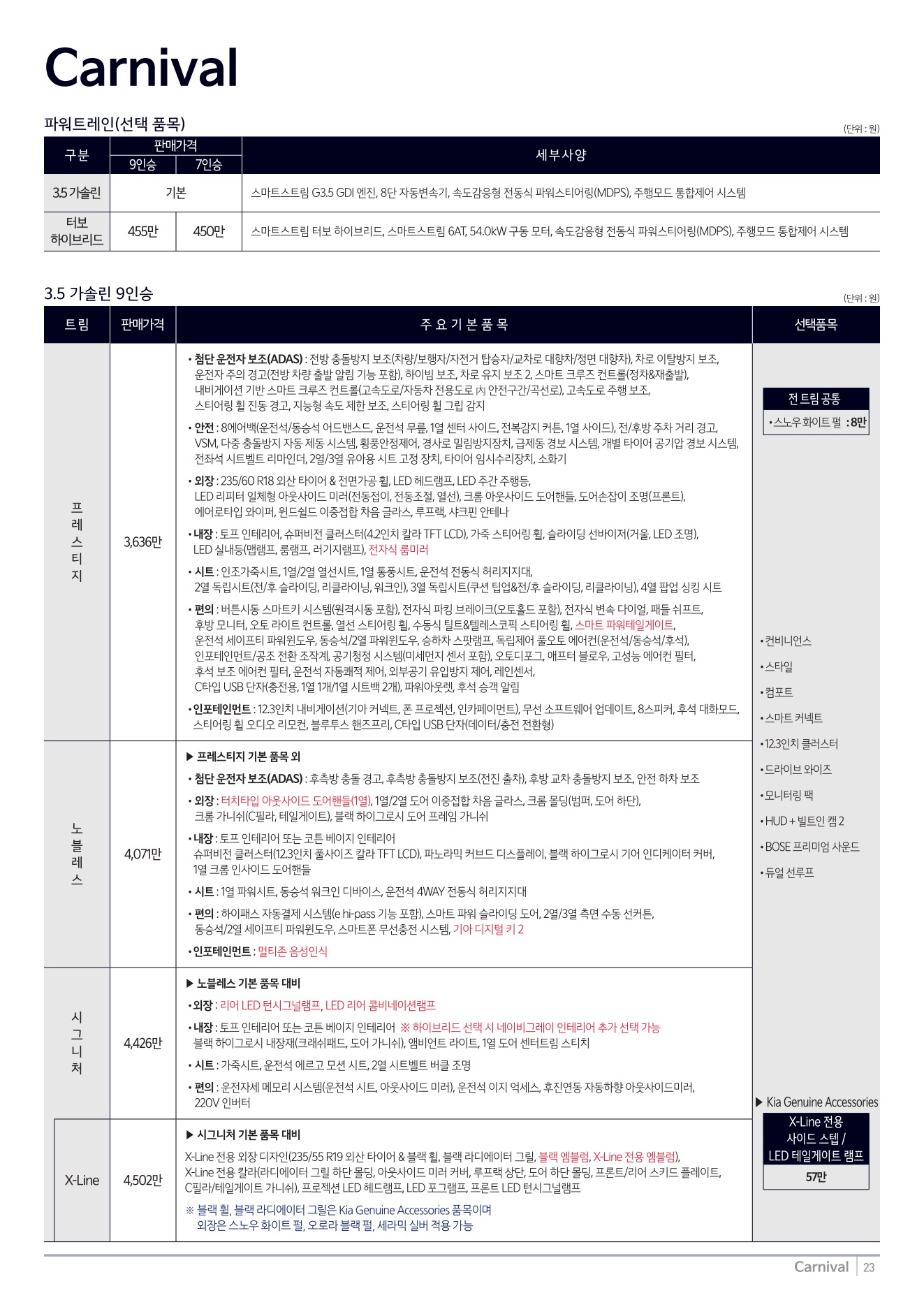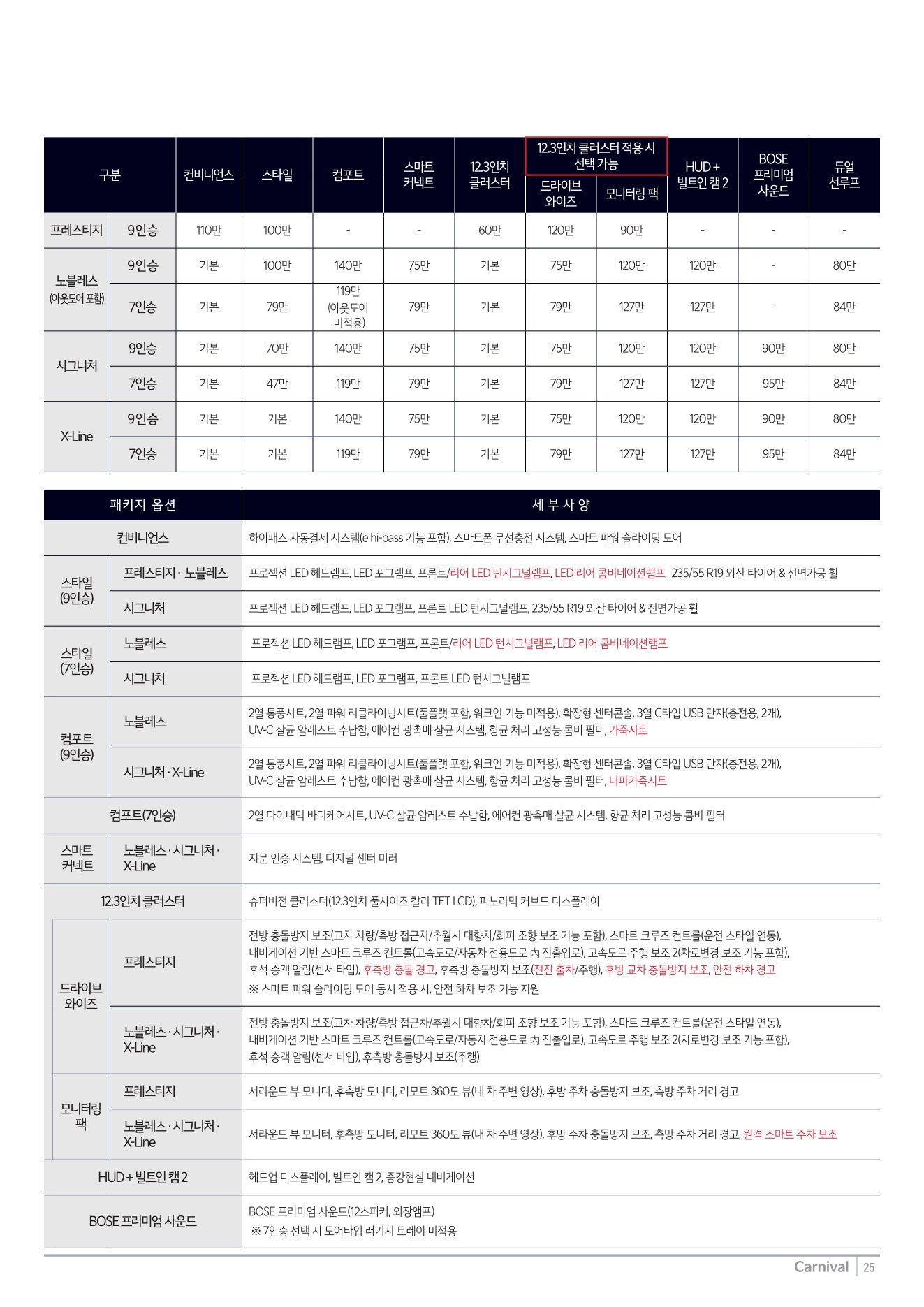 2025년 8월 카니발 신차가격표 (2026년형 카니발 출시)