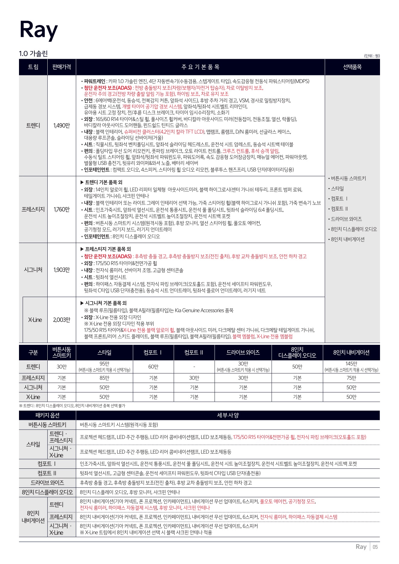 2025년 9월 레이 신차가격표 (2026년형 레이 출시)