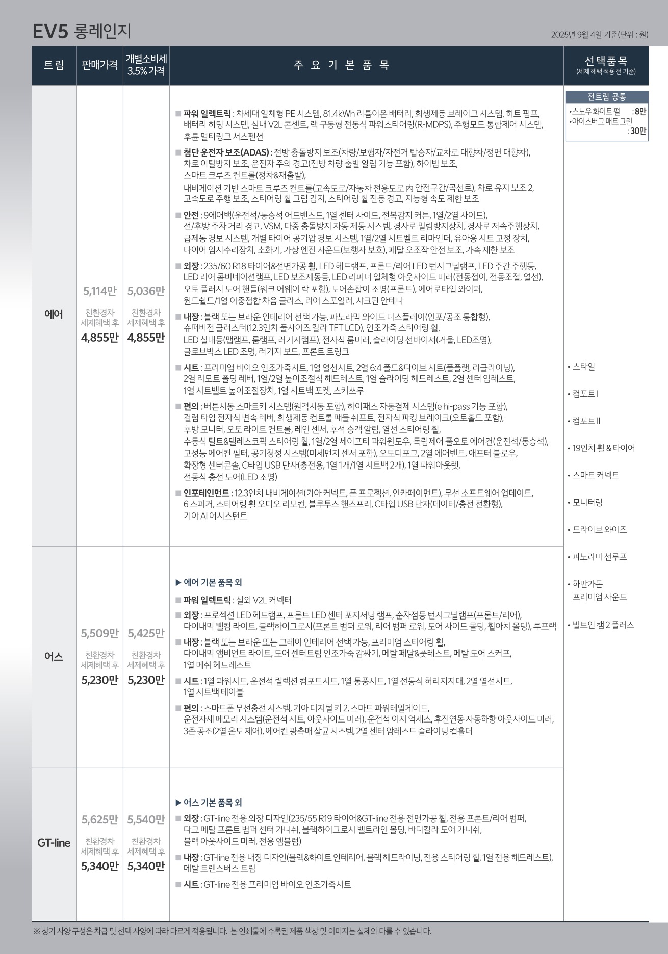 2025년 9월 EV5 신차가격표 (EV5 출시)