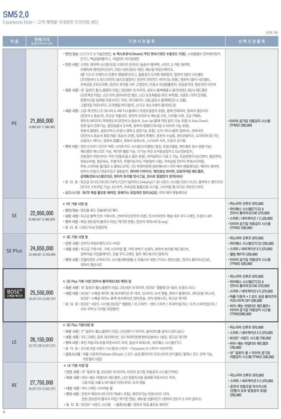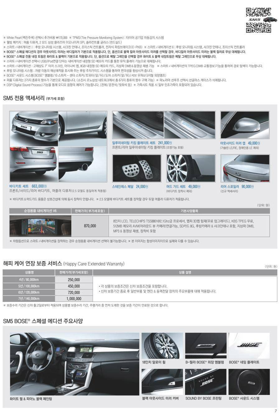 2012년 11월 SM5 (플래티넘) 신차가격표