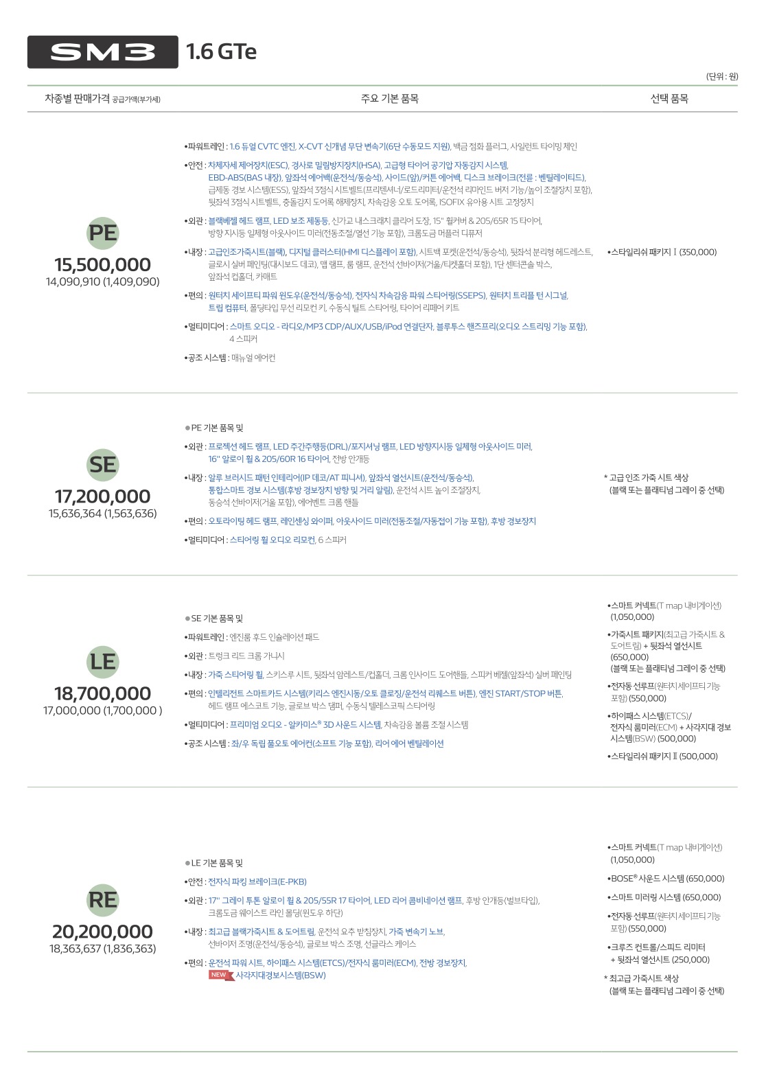 2016년 7월 SM3 ZE 신차가격표