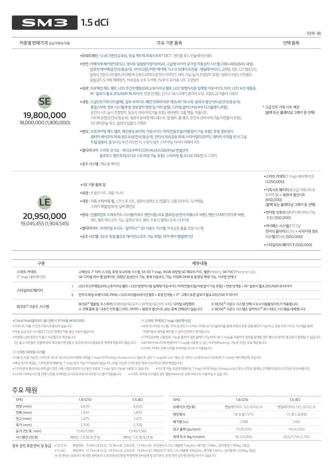 2017년 9월 SM3 신차가격표