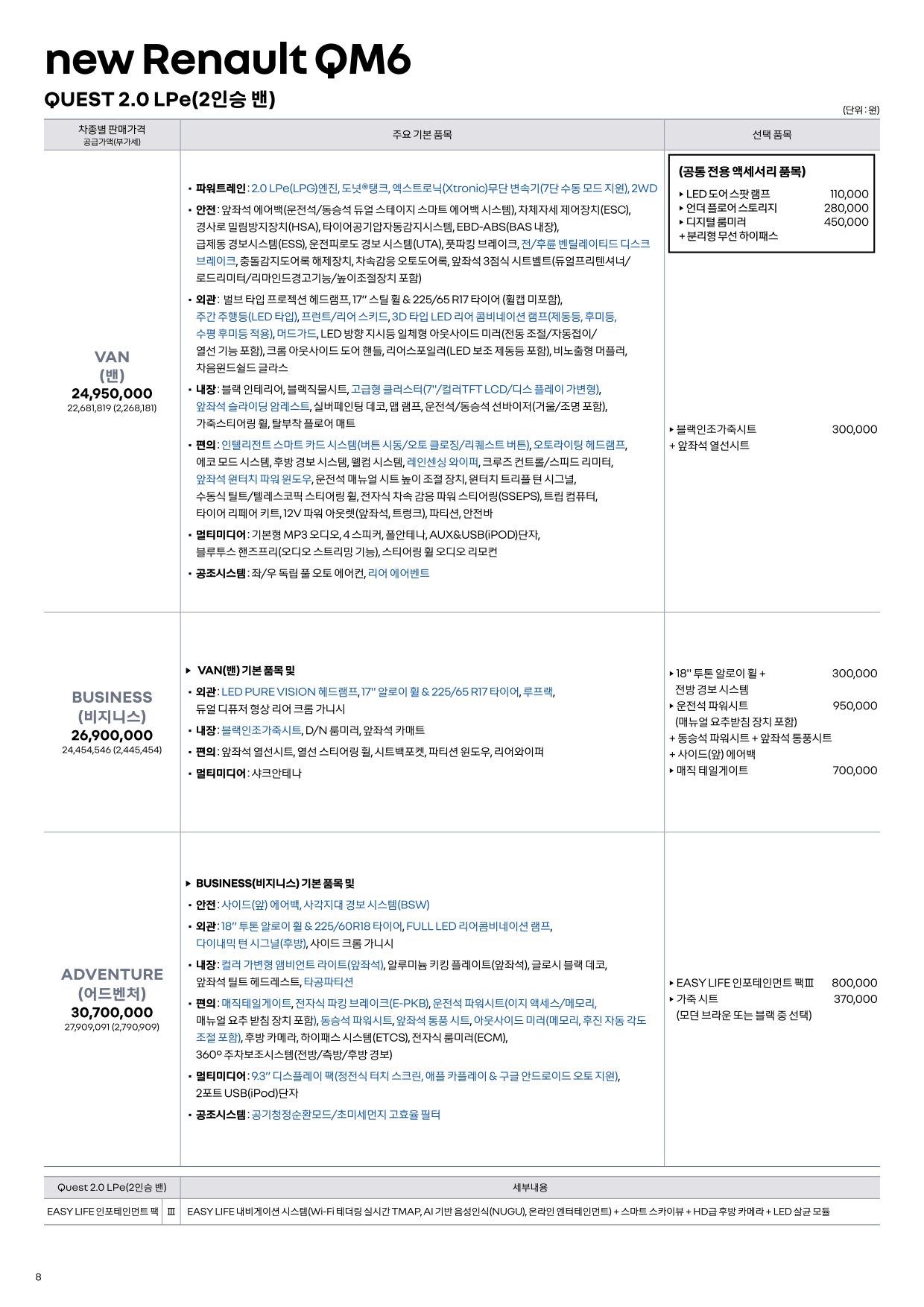 ※ 본 가격표의 모든 저작권은 해당 차량 제조사에 있습니다.